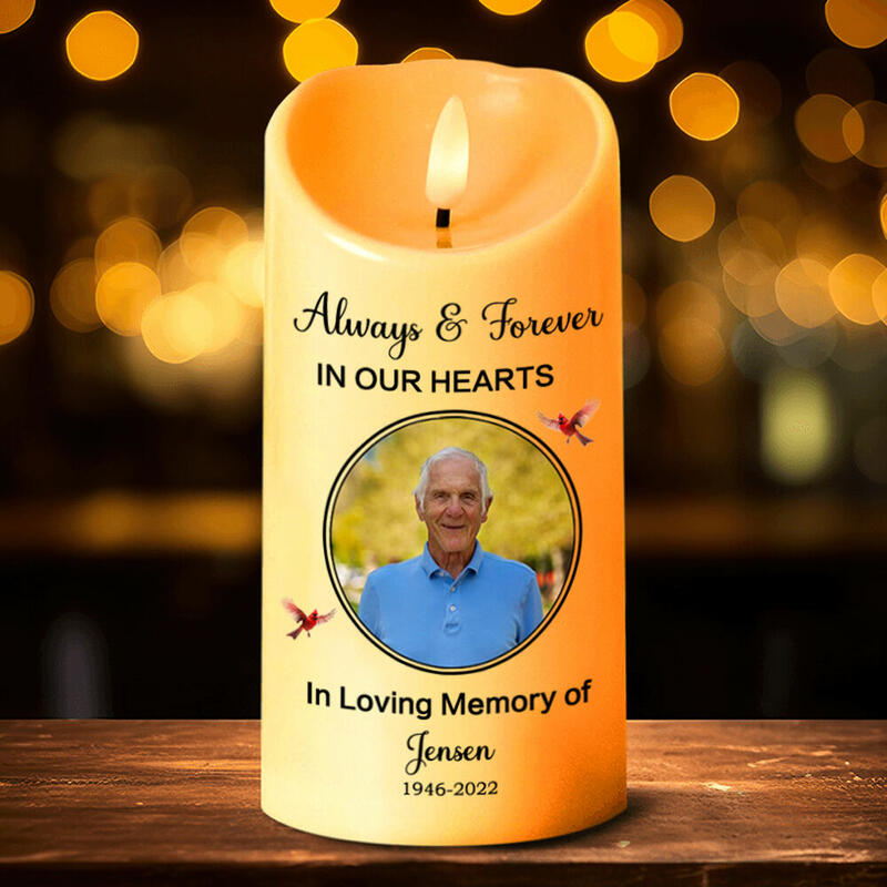 "Always & Forever" Custom LED Candles with Photo of Loved Ones as a Memorial Gift for Christmas