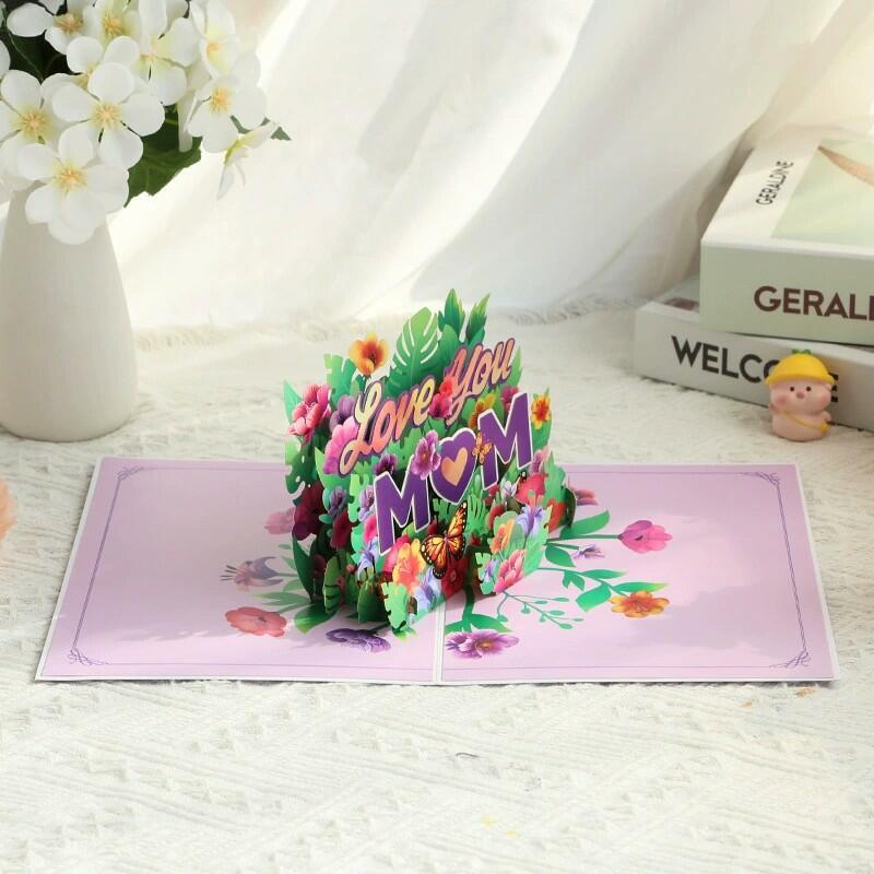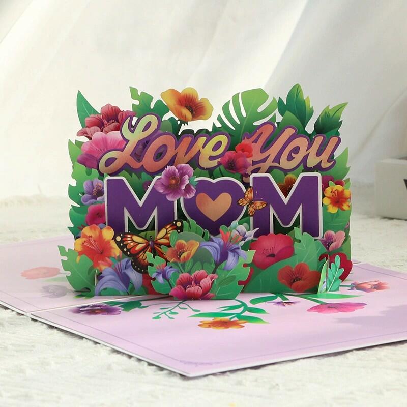 3D Pop Up Card Love You Mom Flowers Warm Design Attractive Mother's Day Gift
