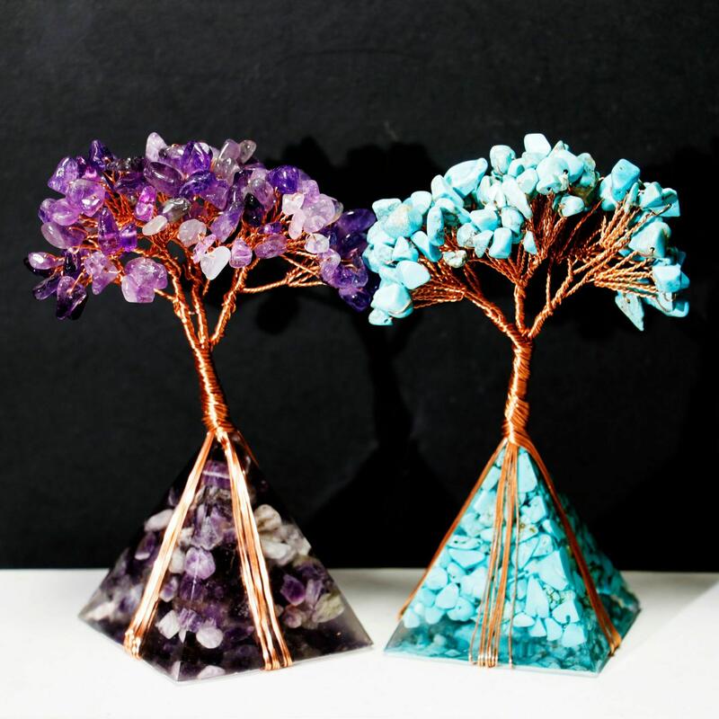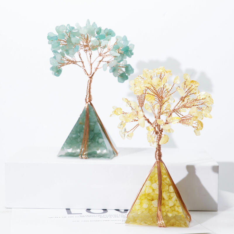 Colorful Gravel Crystal Tree Fortune Tree Pyramid Base Gemstone Tree Ornaments for Friends
