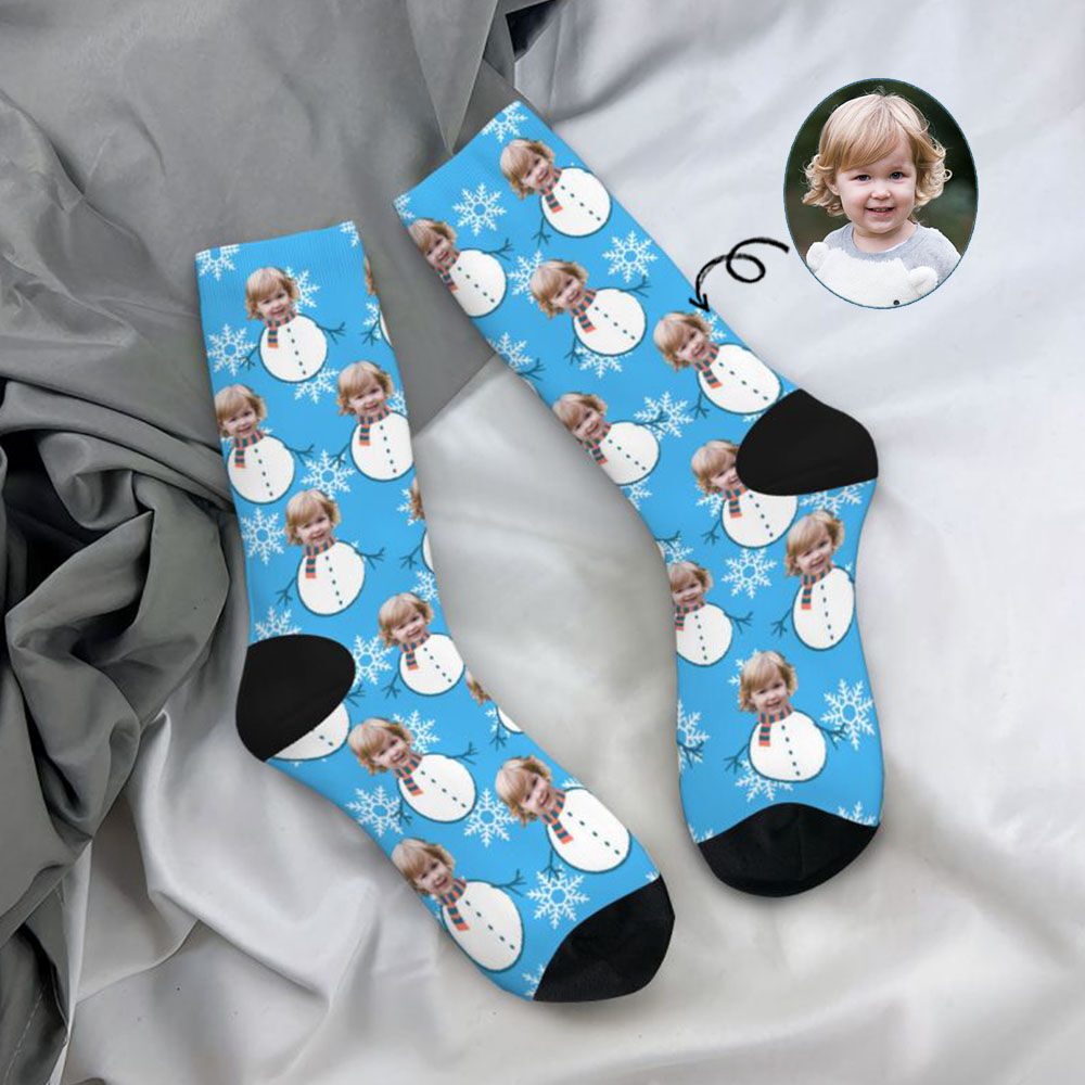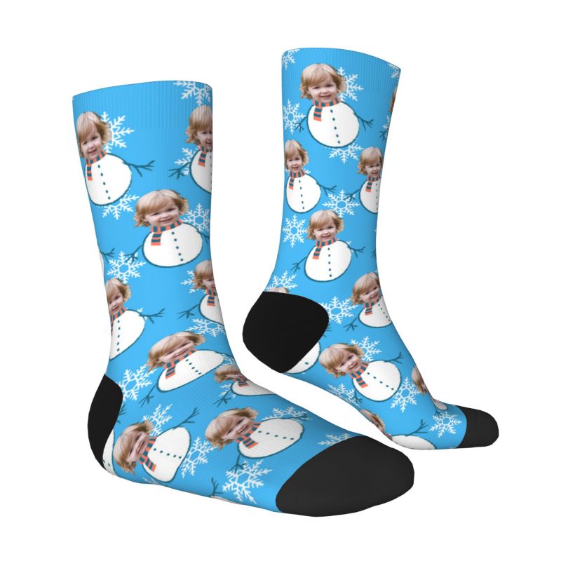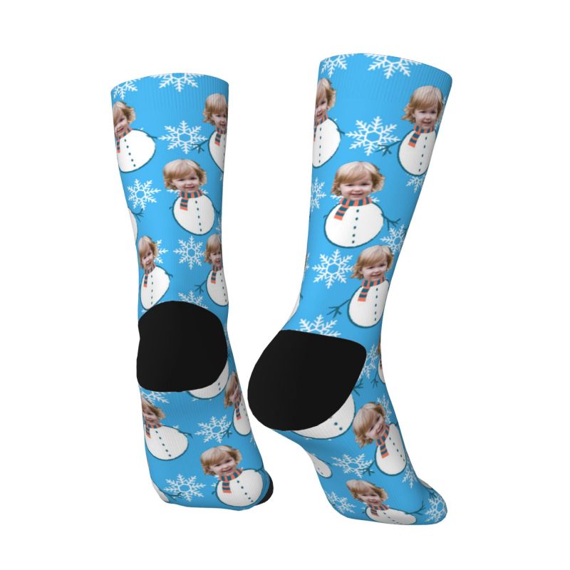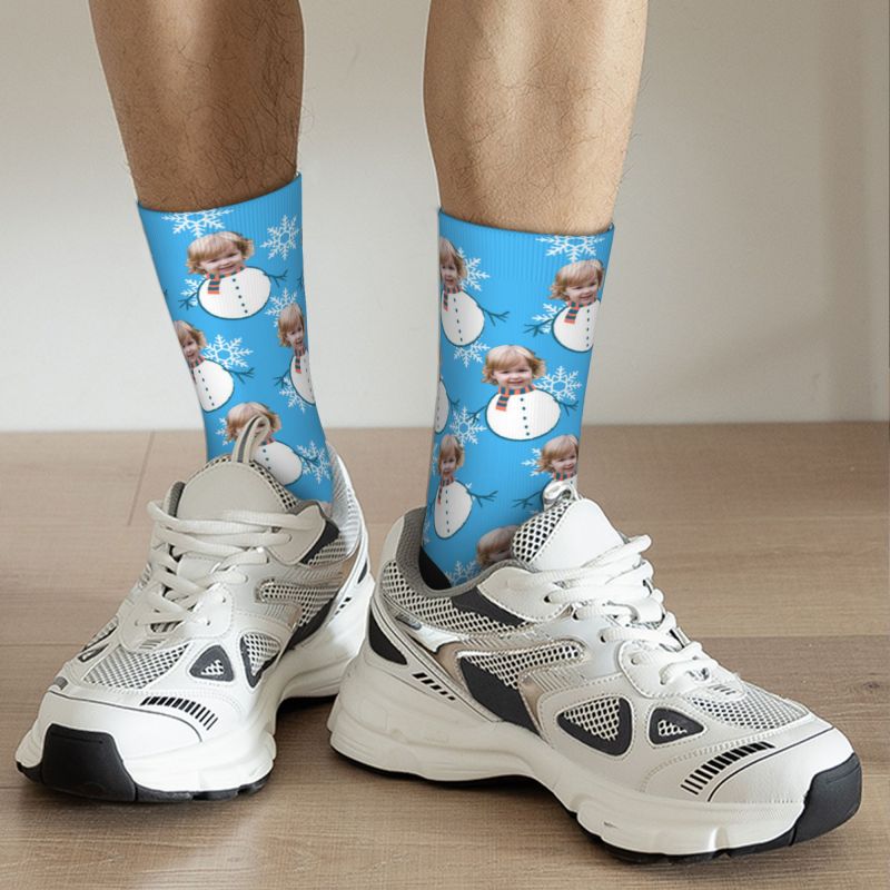 Custom Face Socks with Funny Snowman Pattern Add Kids Photo Christmas Gift for Parents