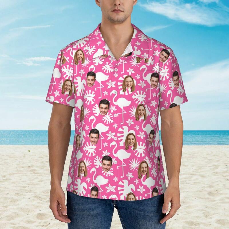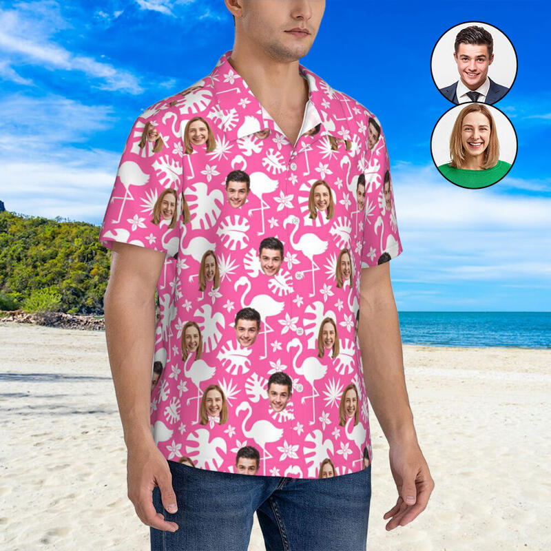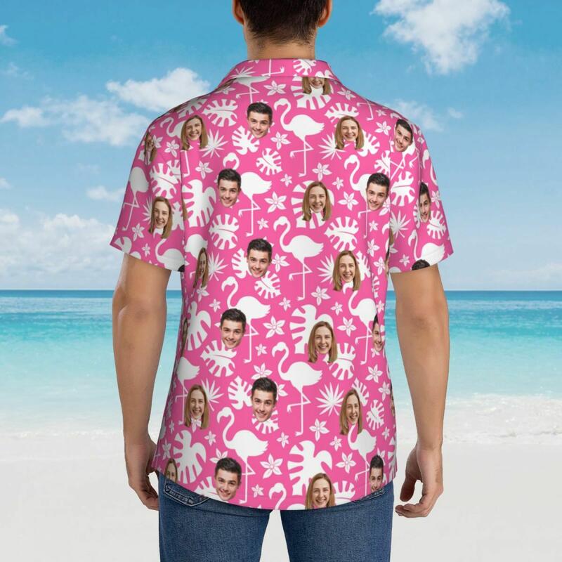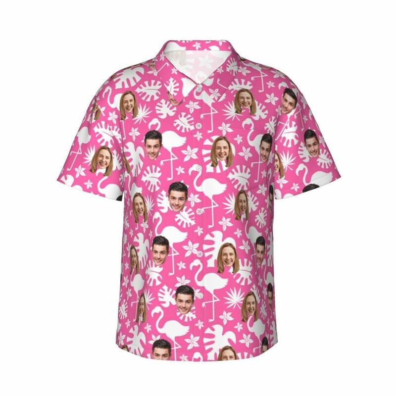 Custom Face Tops White Flamingo Hawaiian Shirts Unisex for Couples on Vacation
