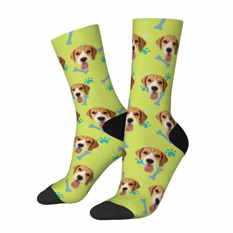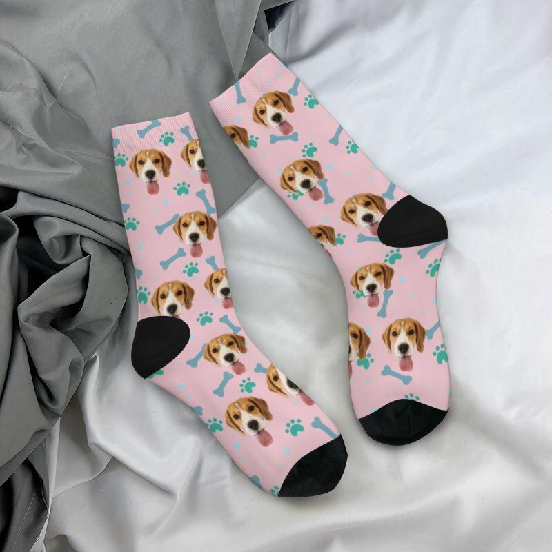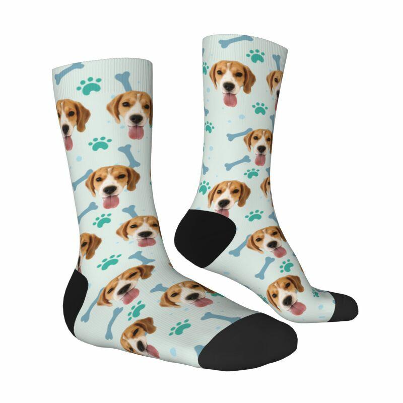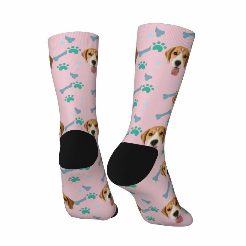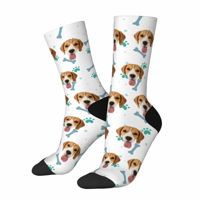 Customized Face Socks Pet Paw and Bones Print Gifts for Pet Lovers