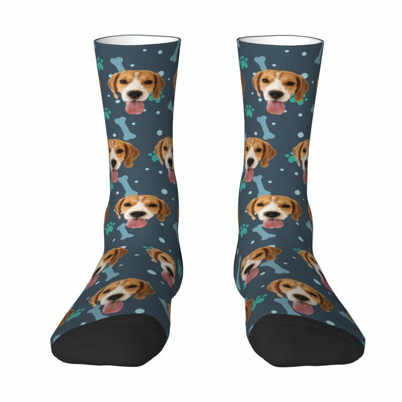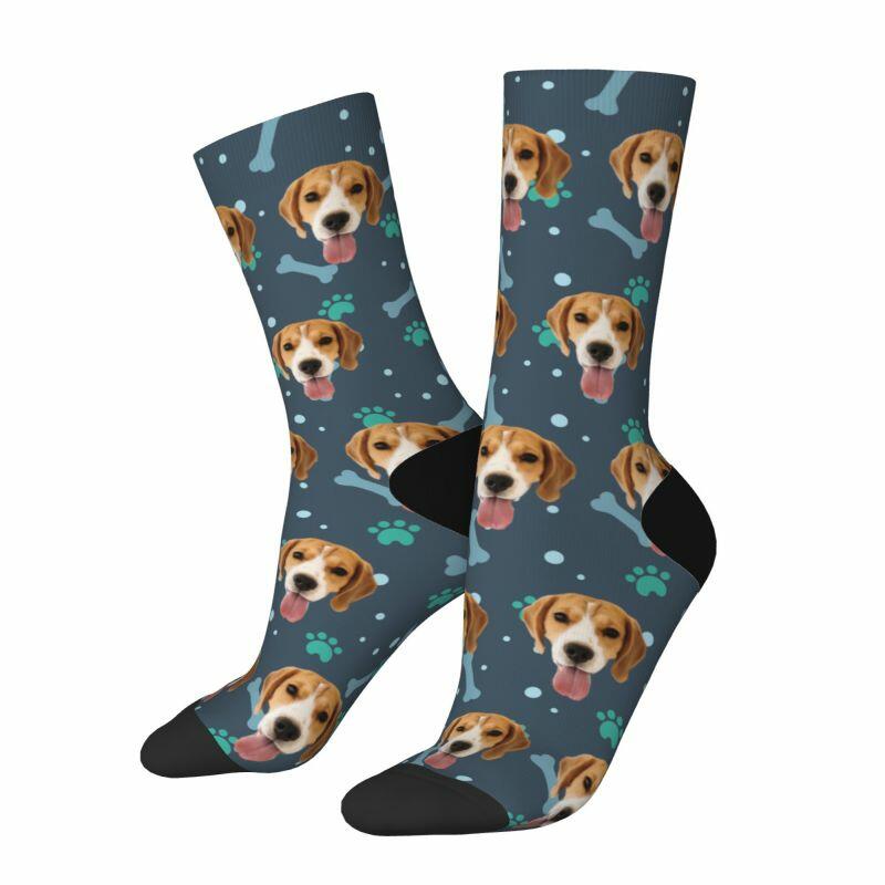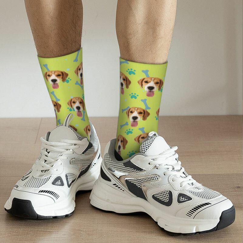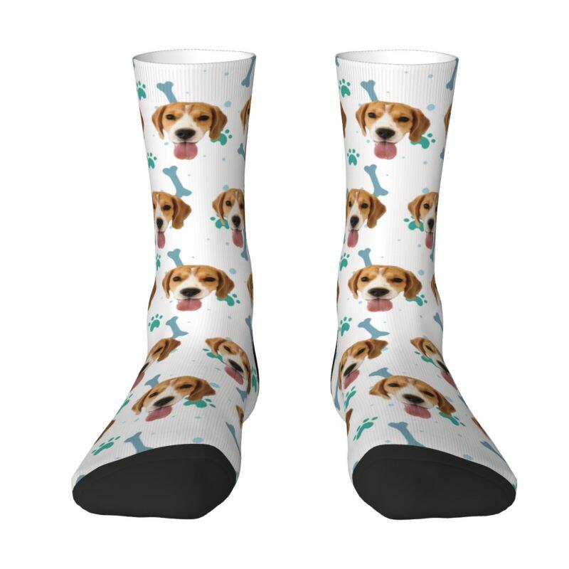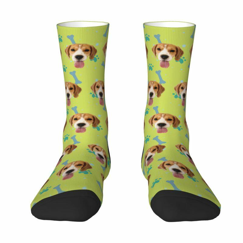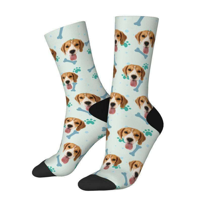 Customized Face Socks Pet Paw and Bones Print Gifts for Pet Lovers