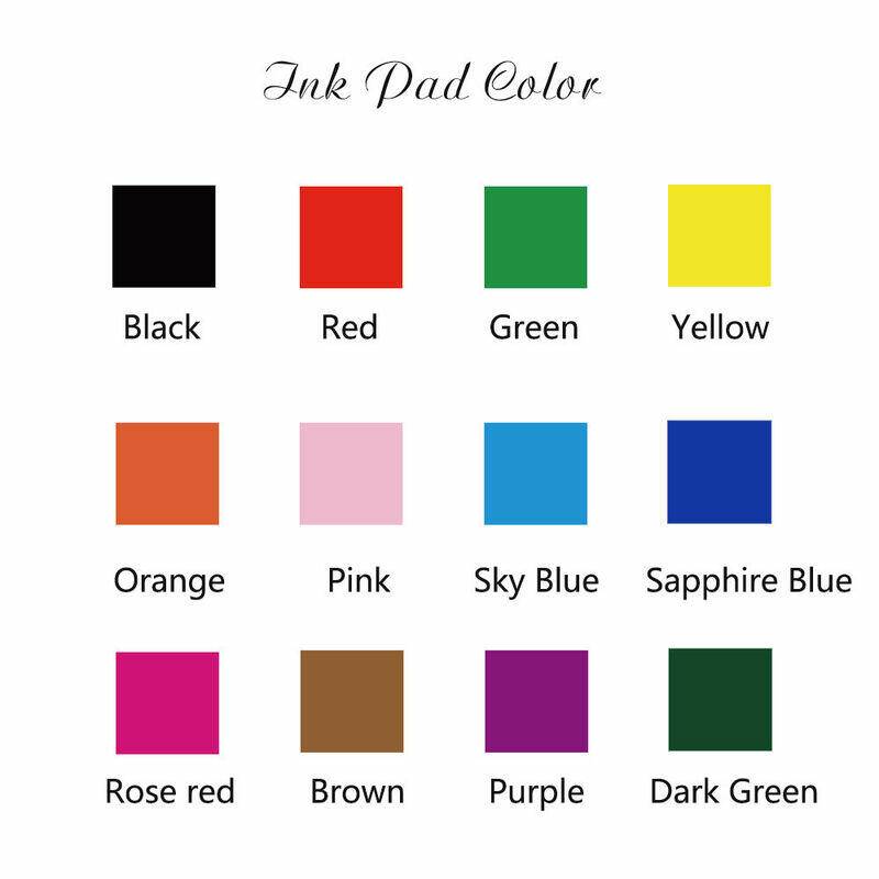 The stamp cover is laser engraved in a uniform black color, which does not affect the choice of ink color.