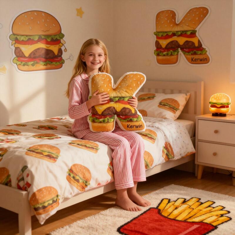 Personalized 3D Letter Pillow Hamburger Print Pillow Funny Fabric Cushion for Kids