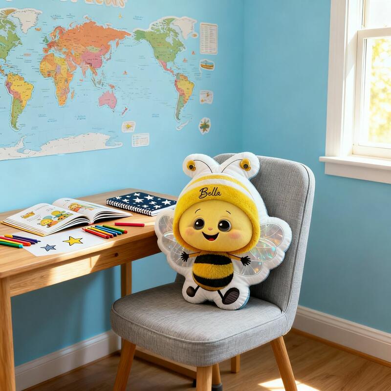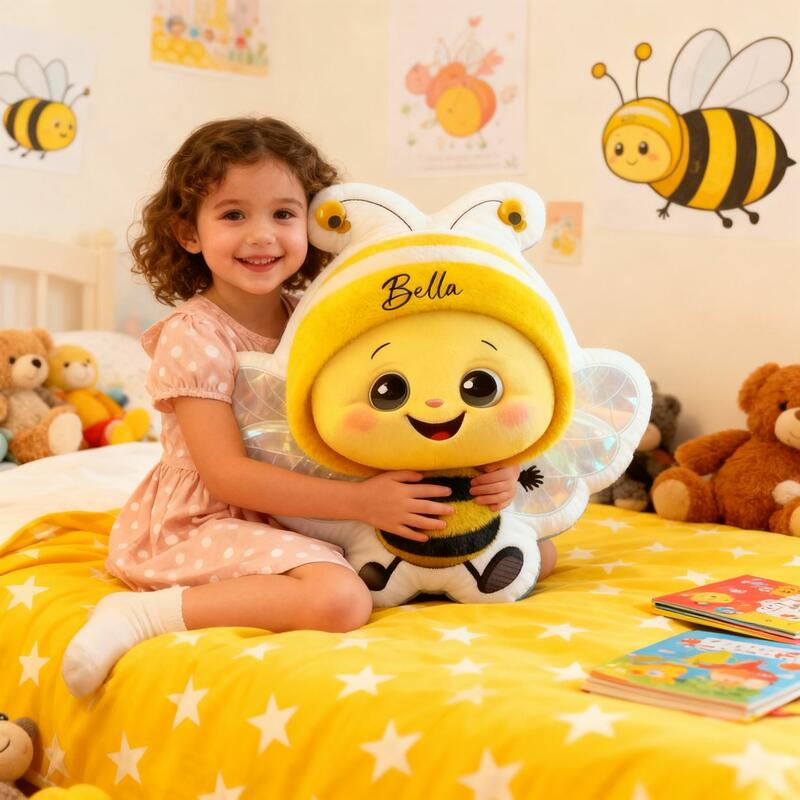 Personalized Baby Bee Pillow Custom Name Cartoon Bee Pillow Soft Cushion for Children
