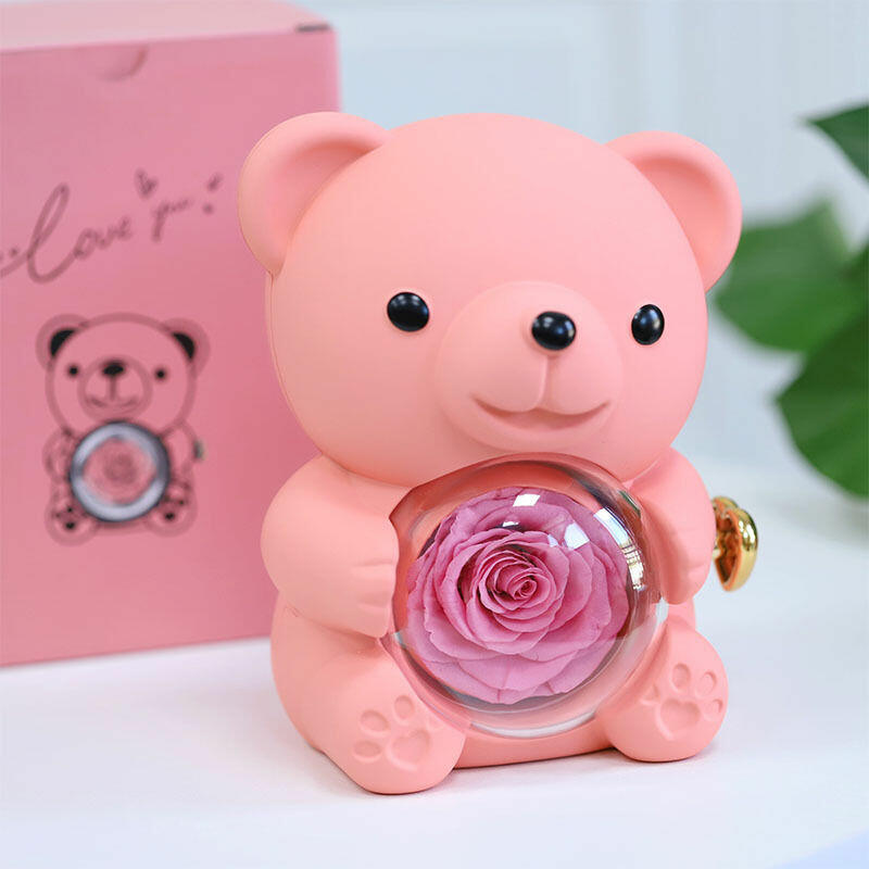 Personalized Bear Jewelry Box with Heart Shape Photo Necklace Valentine's Day Gift