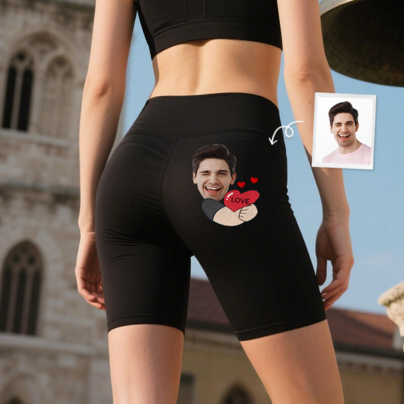 Personalized Biker Leggings My Love Hug Custom Photo Funny Design Perfect Gift for Her Lovers Wife
