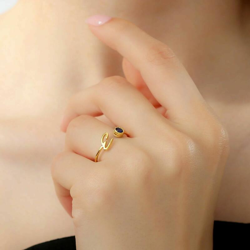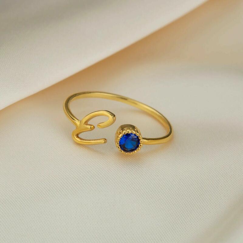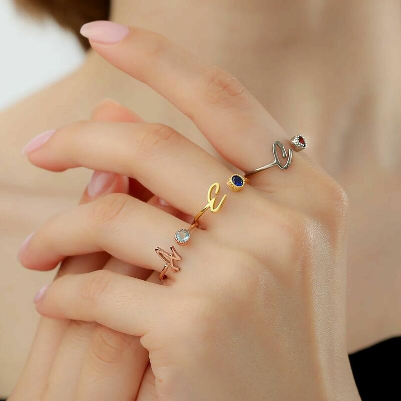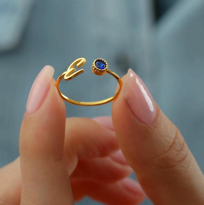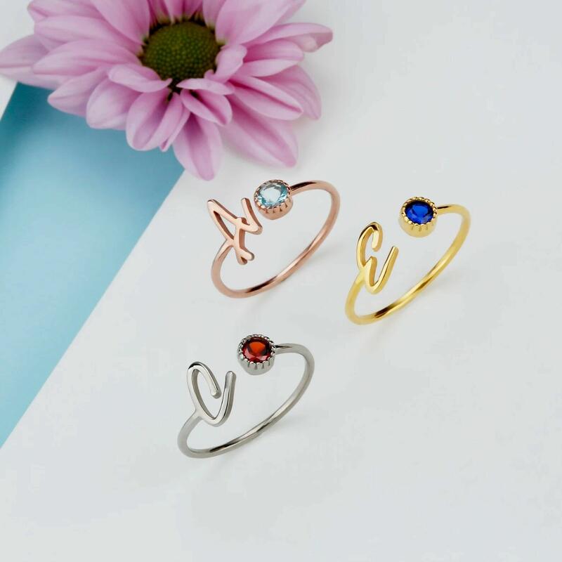 Personalized Birthstone Ring With Letters Cute Gift For Girls