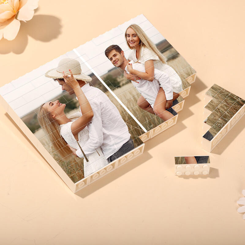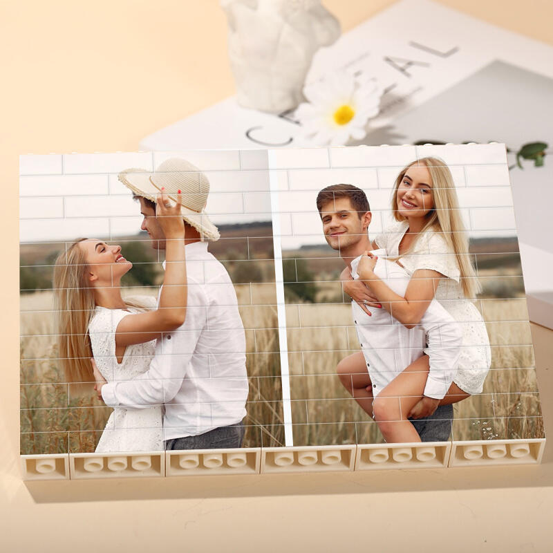 Personalized Building Block Puzzle Custom 2 Photos Brick Rectangle Valentine's Day Present