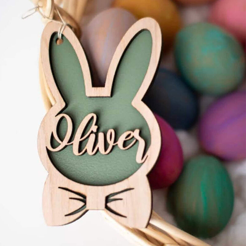 Personalized Bunny Name Tag with Bow Warm Easter Gift