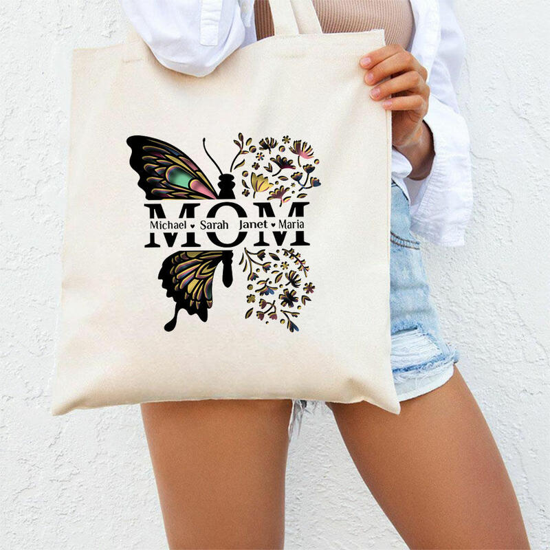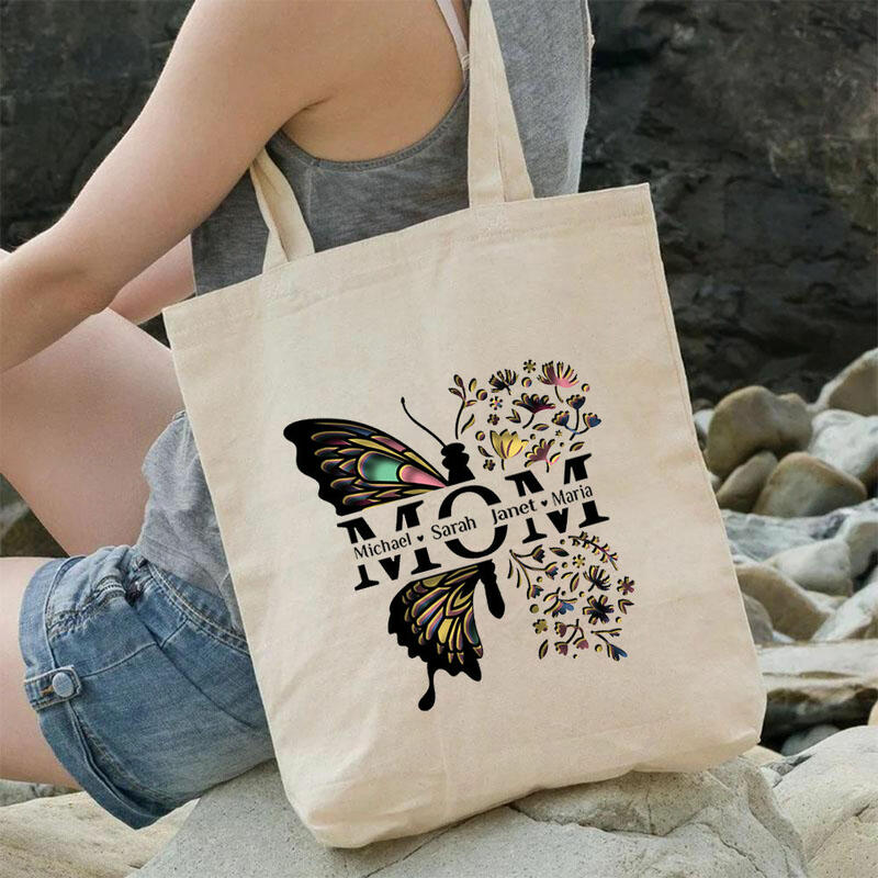 Personalized Canvas Bag with Butterfly Print to Add Name as a Mother's Day Gift for Her