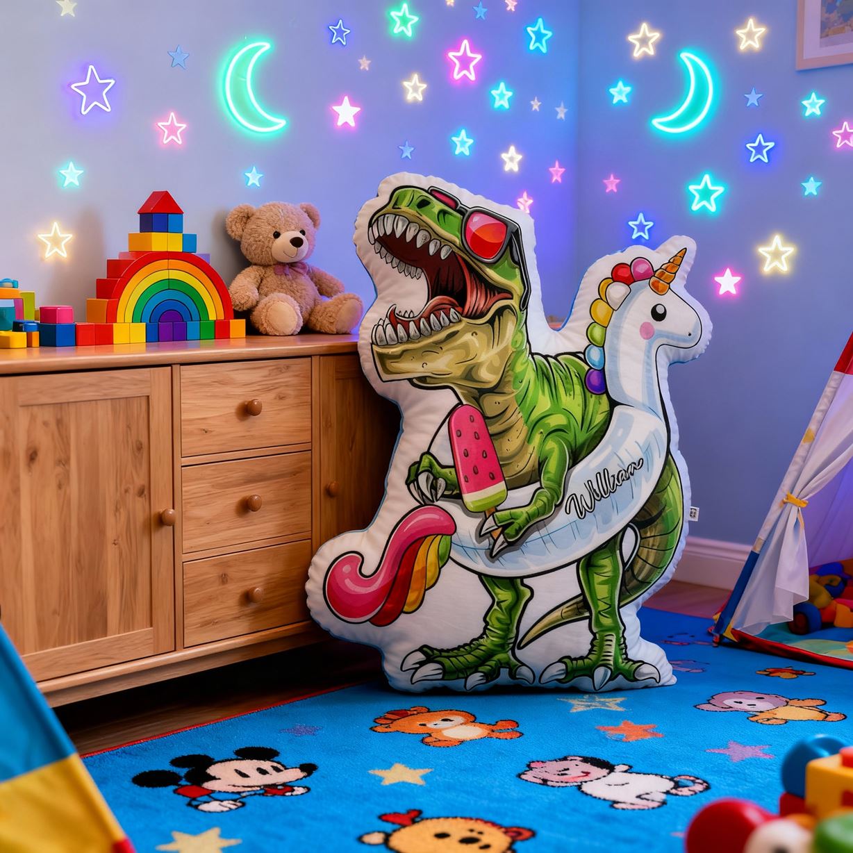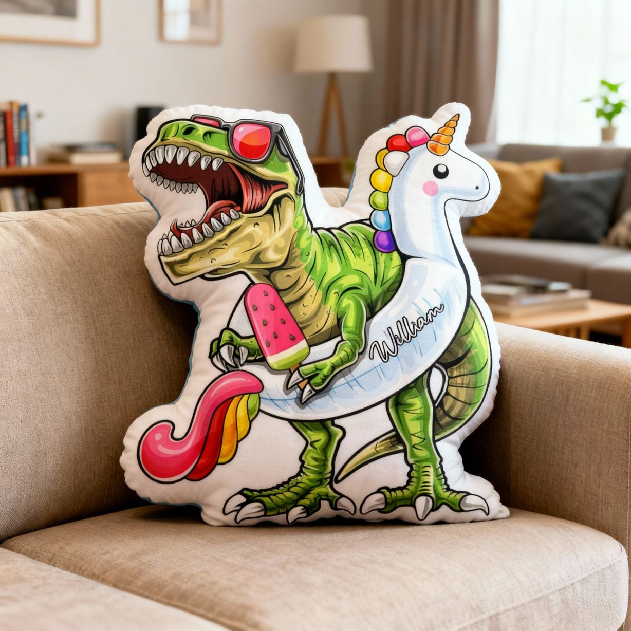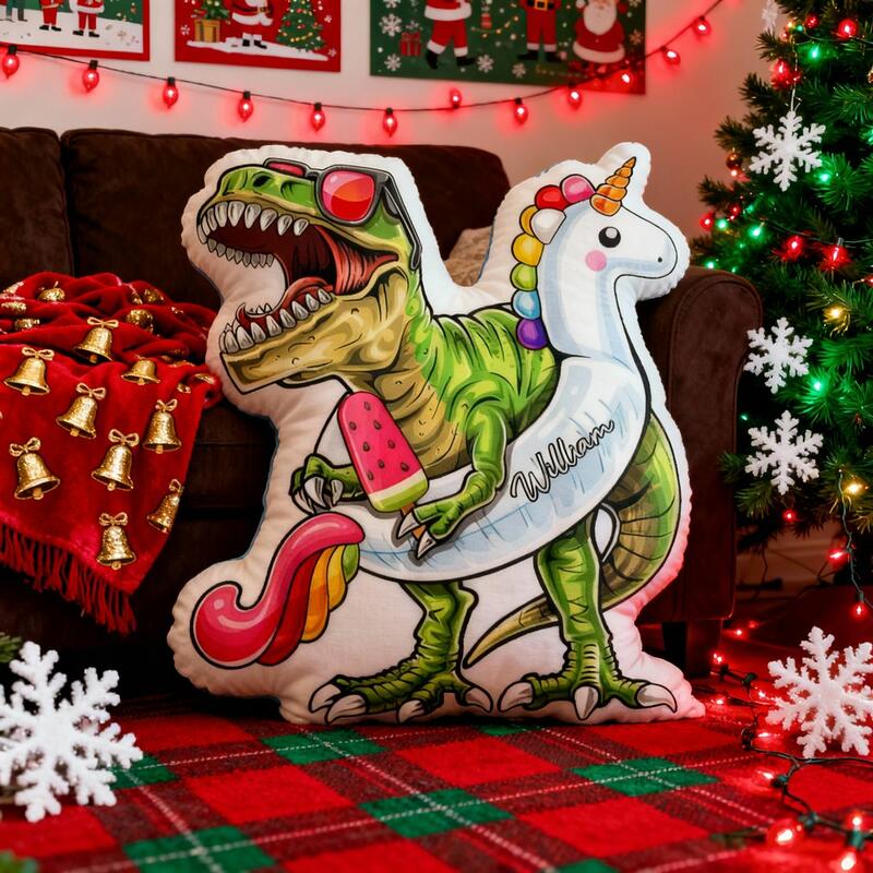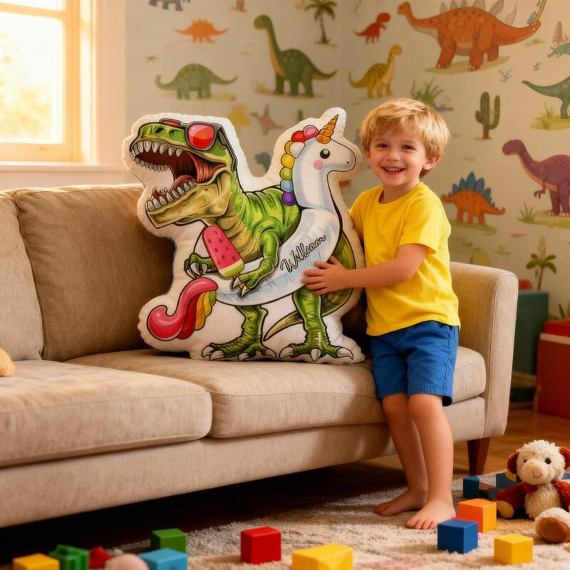 Personalized Cartoon Dinosaur-Themed Throw Pillow Fun Dinosaur Print Throw Pillow Gift for Kids
