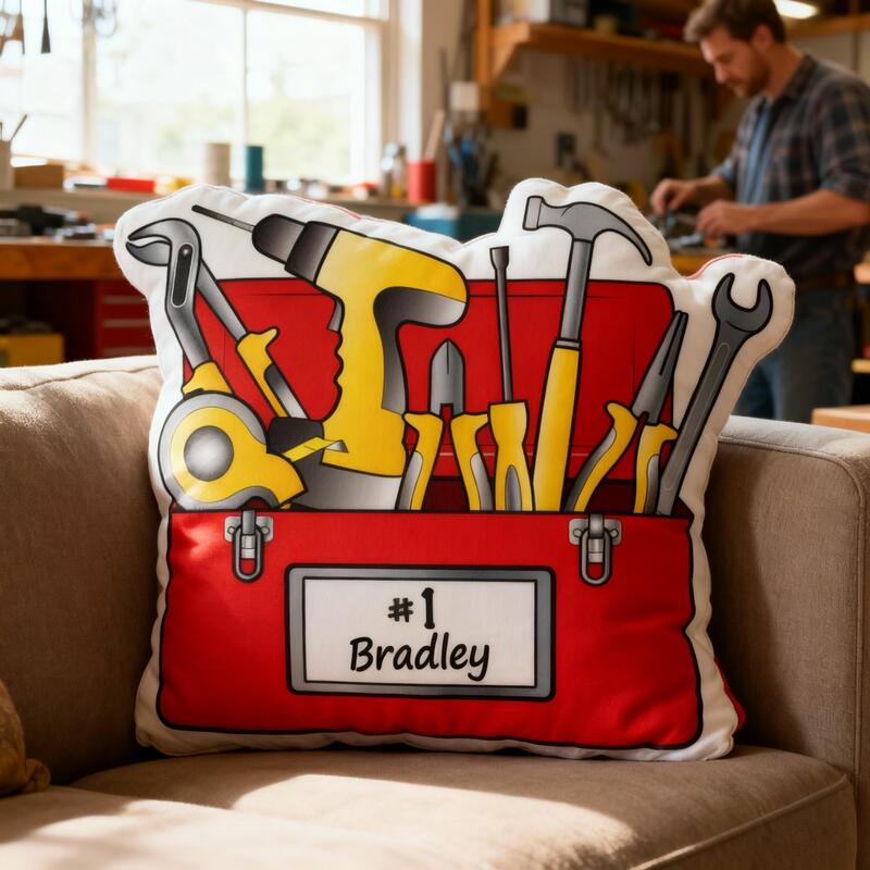 Personalized Cartoon Toolbox Pillow Fun Home Decor Cushion Birthday Gift for Kids