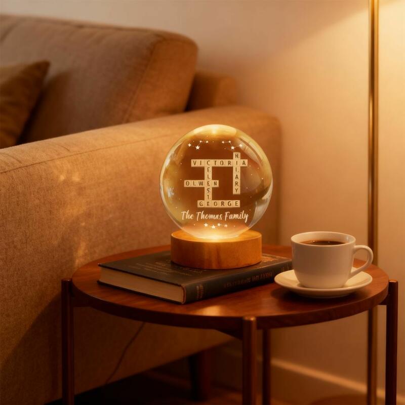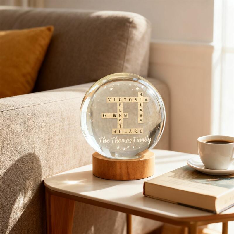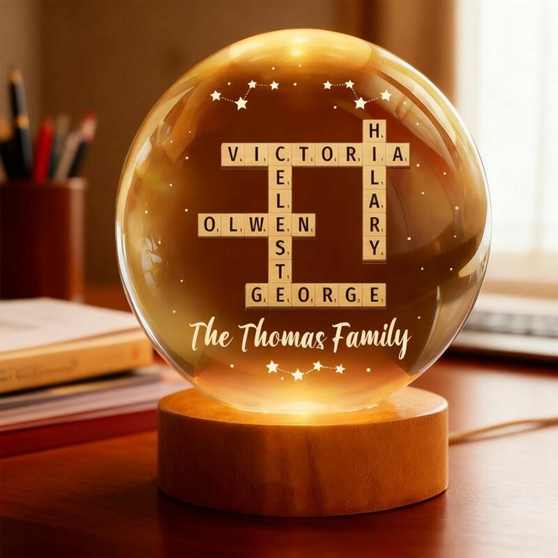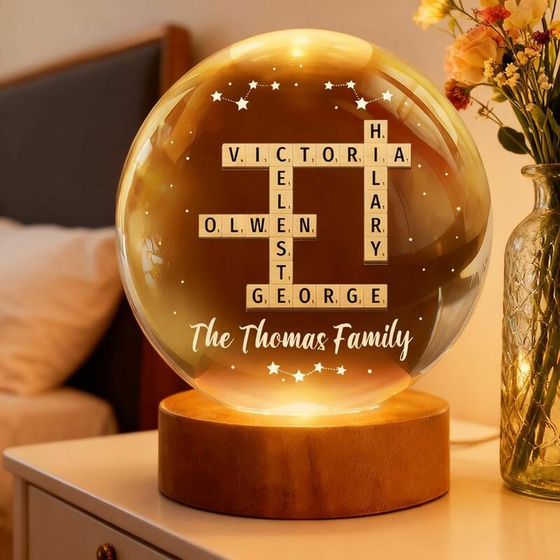 Personalized Crystal Ball Lamp Crossword Puzzle Custom Name Christmas Gift for Family
