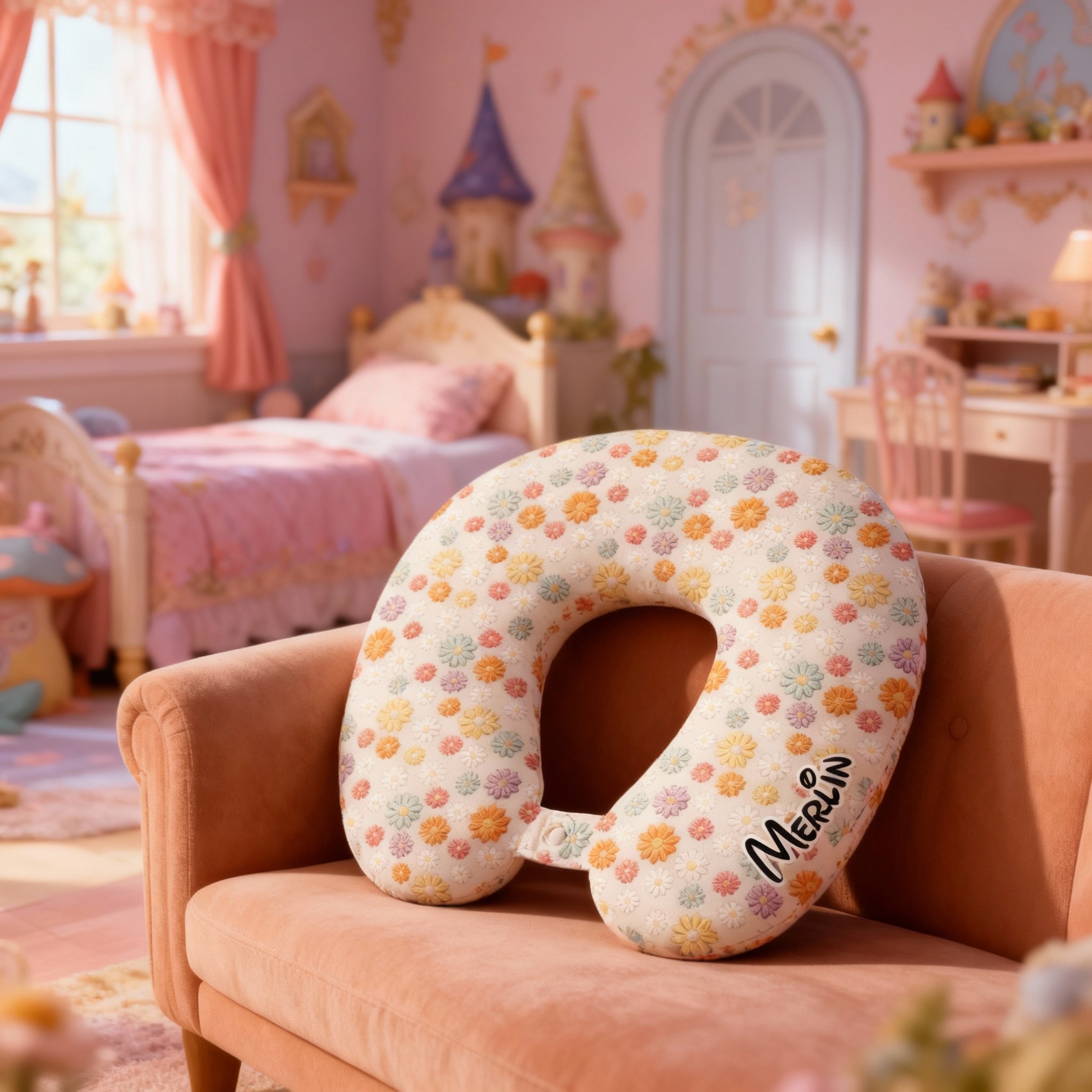 Personalized Daisy Pattern U-Shaped Pillow Customizable with Name Travel Gift for Girls