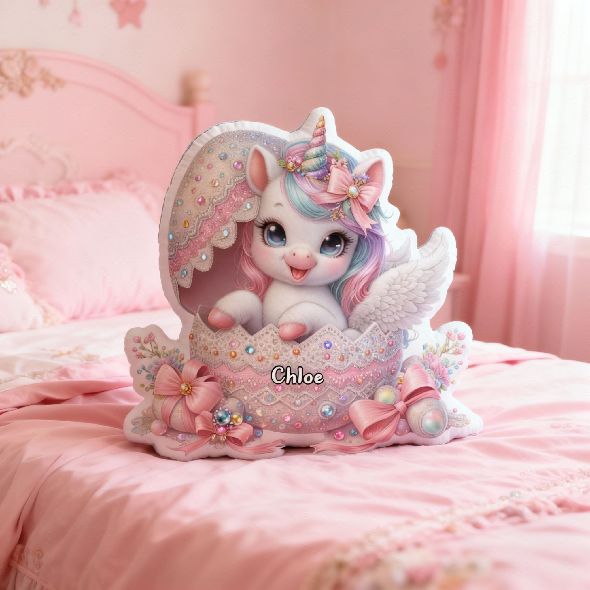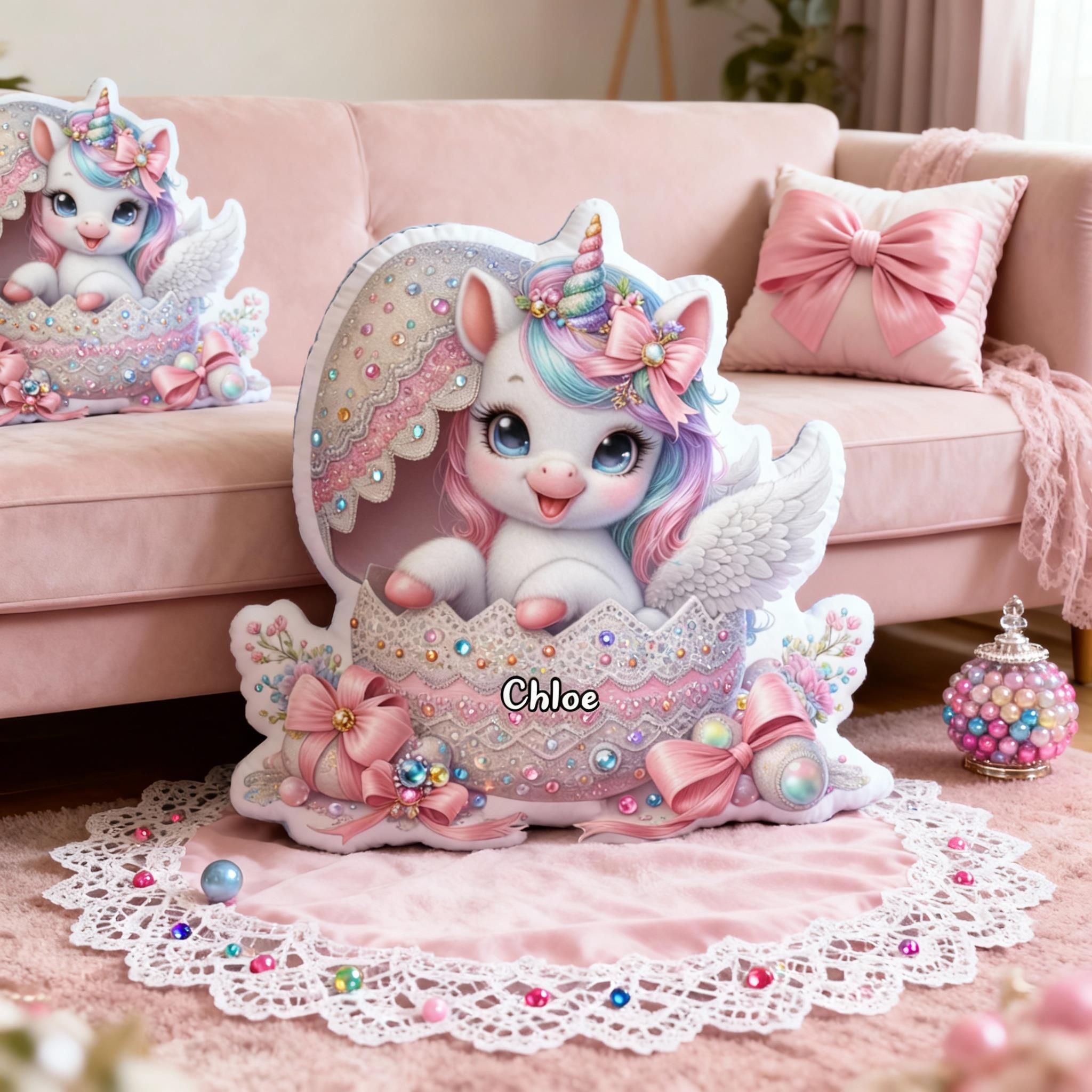 Personalized Eggshell Unicorn Pillow Customizable with Your Name Fun Christmas Gift for Kids