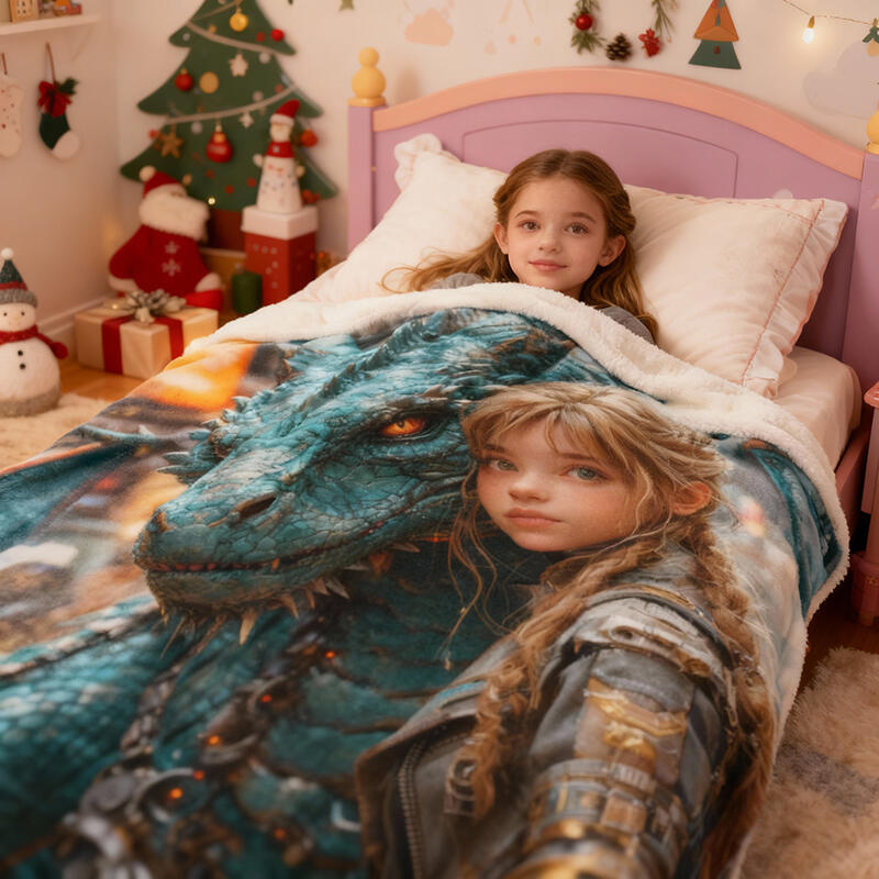 Personalized Face Portrait Blanket with Warrior Pattern Creative Gift for Daughter