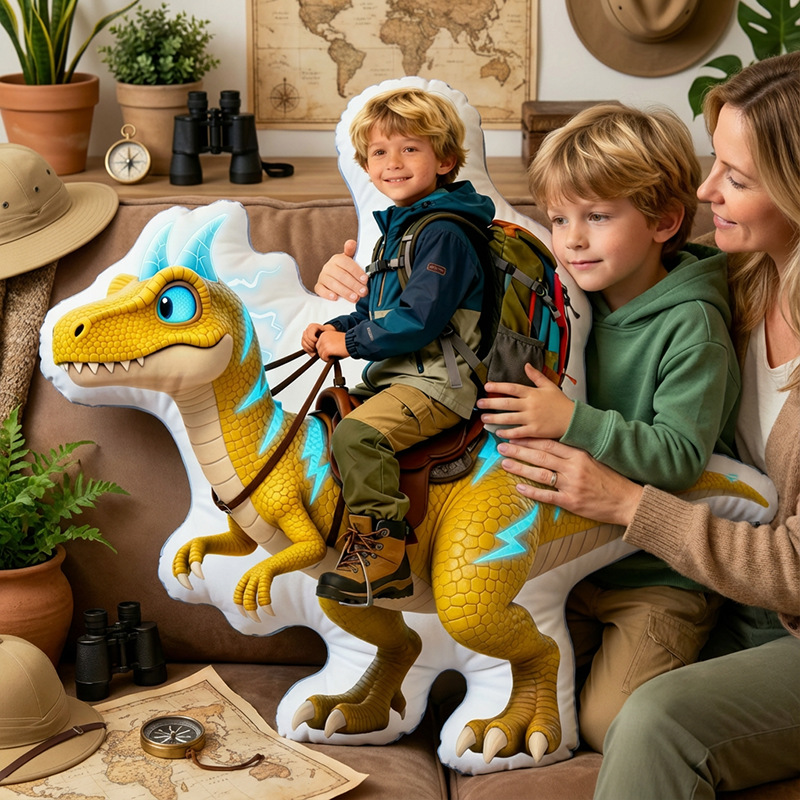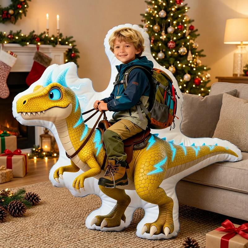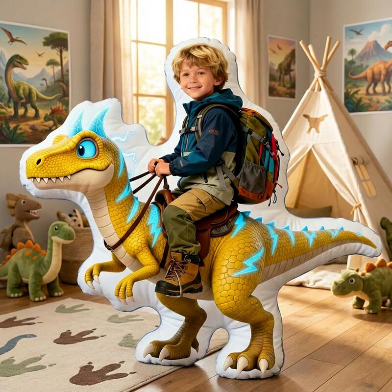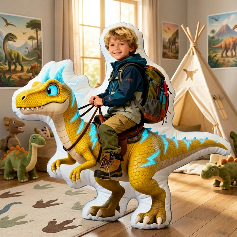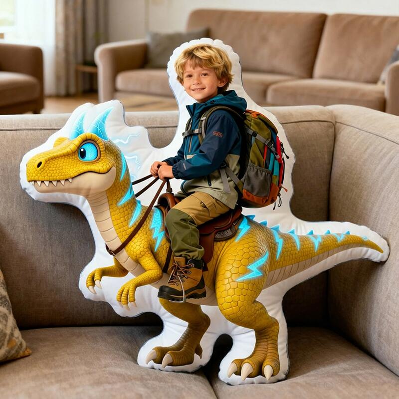 Personalized Face Portrait Pillow with Cartoon Dinosaur Pattern Creative Gift for Son