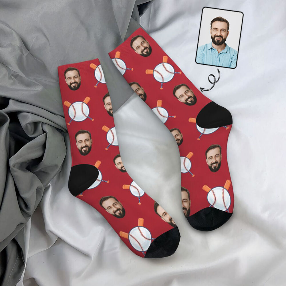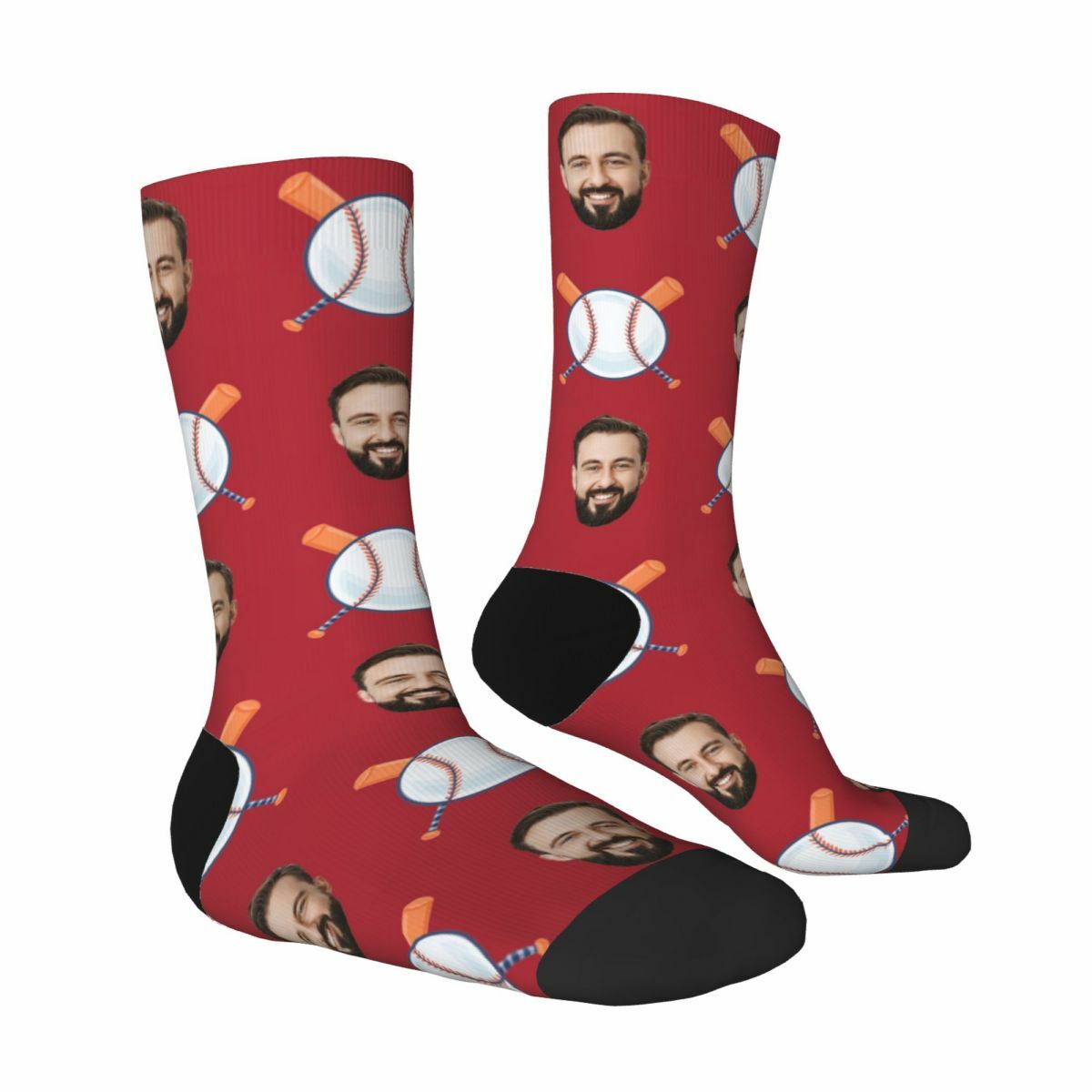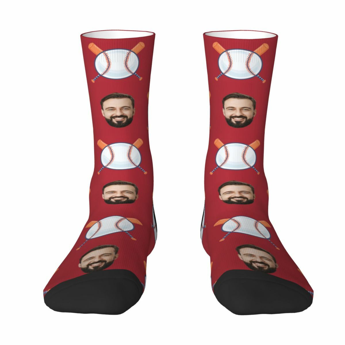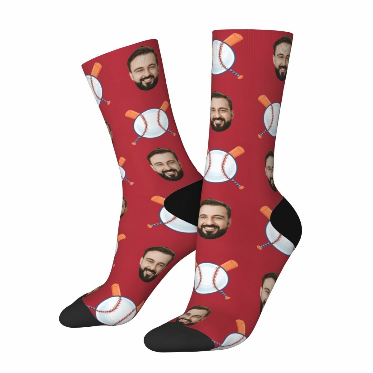 Personalized Face Socks Baseball Print Add Photo Mid-Calf Socks for Him