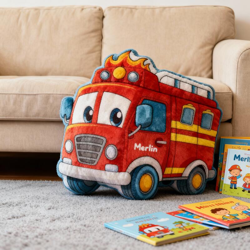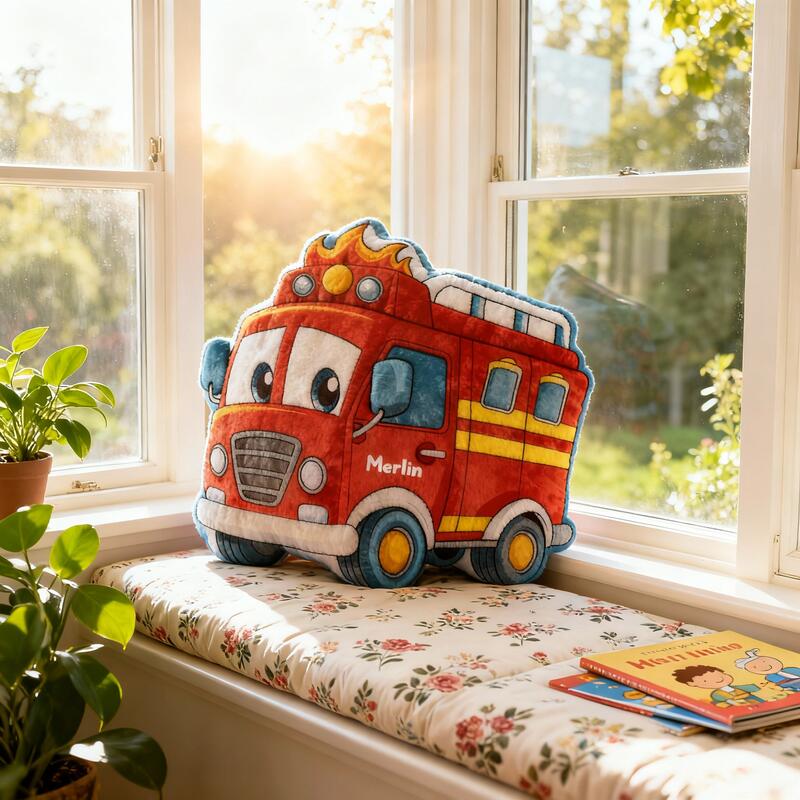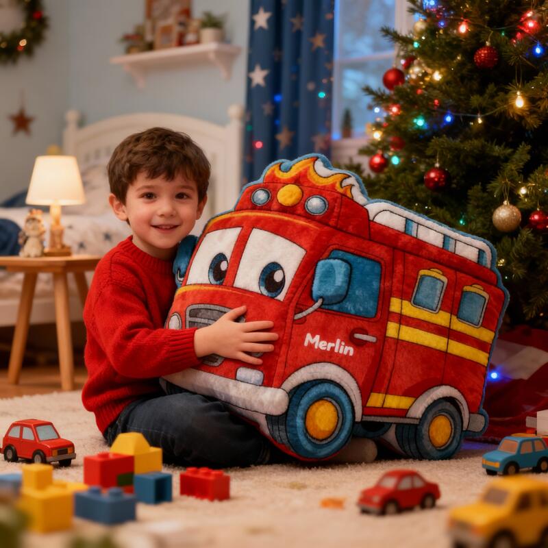 Personalized Fire Truck-Shaped Pillows with Customizable Names Fun Christmas Gifts for Boys
