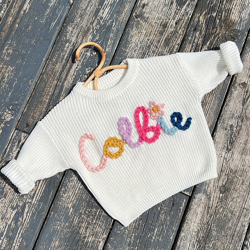 Personalized Handmade Name Sweater with Random Color Text Beautiful Present for Little Baby