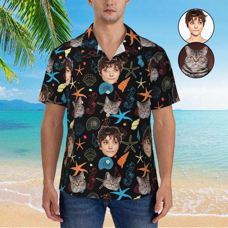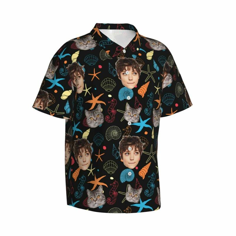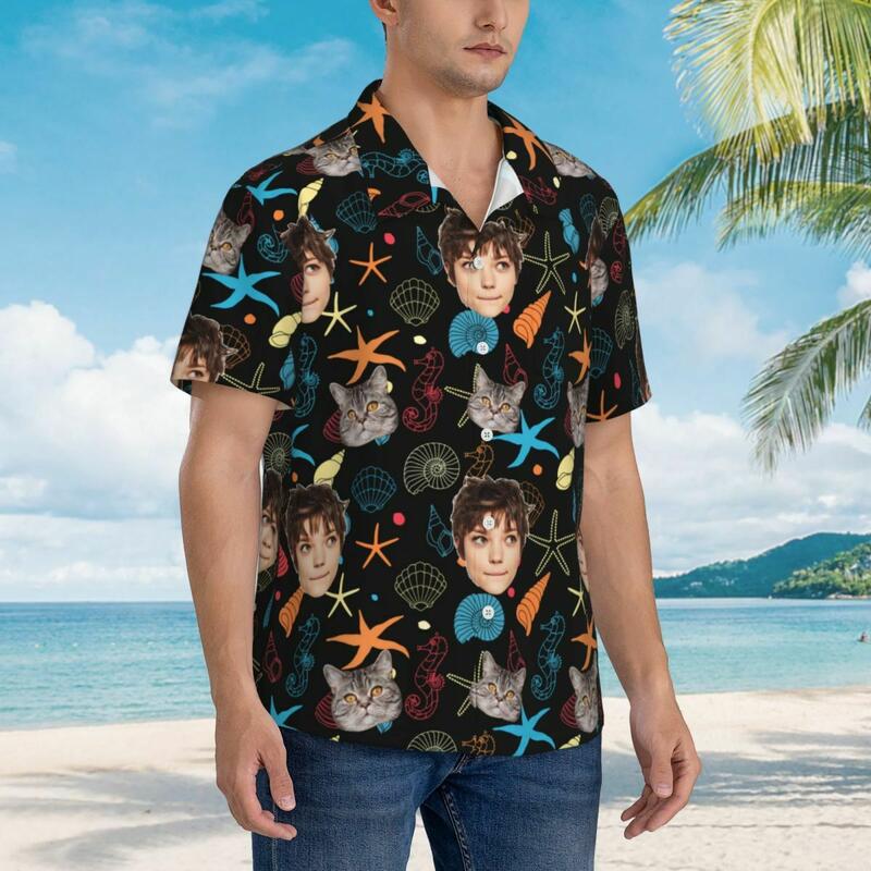 Personalized Hawaiian Shirt with Starfish Pattern Unisex Custom Photo Beach Shirt