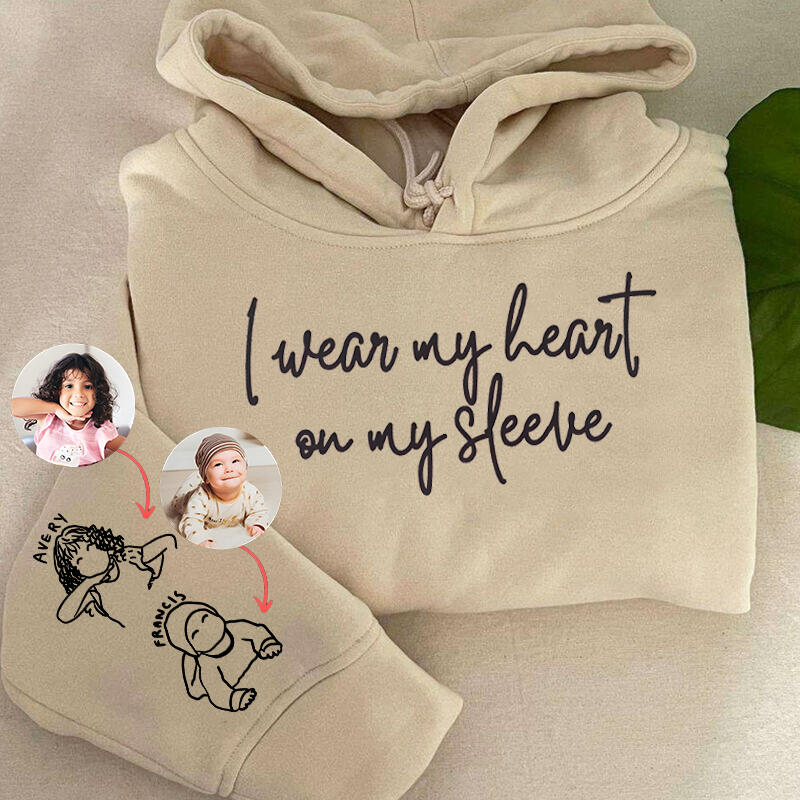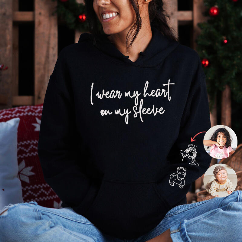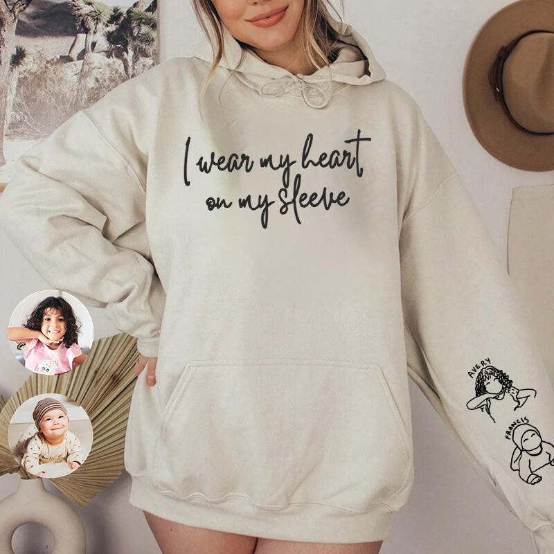 Personalized Hoodie Wear My Heart On My Sleeve with Custom Photos Perfect Gift for Mother's Day