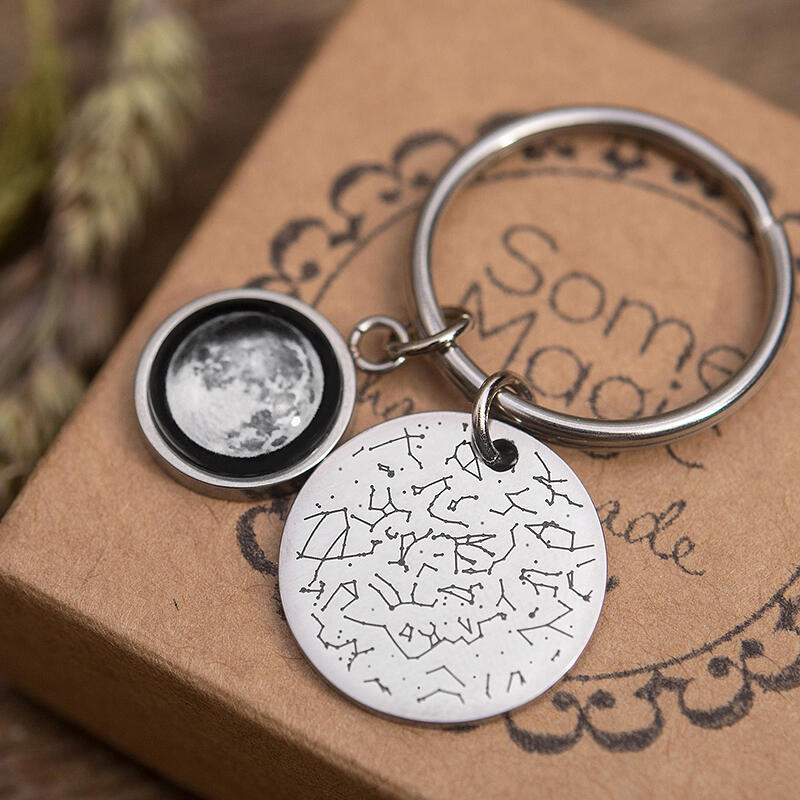 Personalized Keychain Star Map And Moon Phase Design Unique Gift for Lover's Anniversary