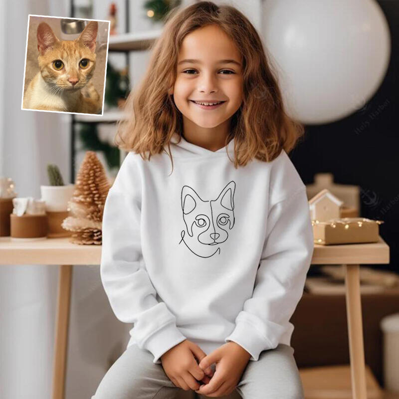 Personalized Kids Embroidered Hoodies Customized Line Drawing Warm Gifts For Pet Lovers