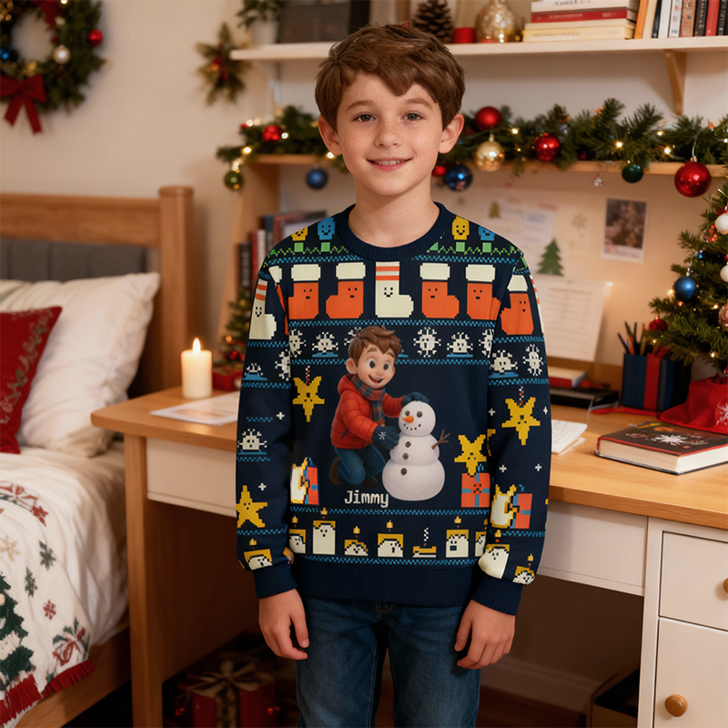 This sweater has a fun custom photo feature that makes it stand out. Pick your child's favorite snapshot (silly family selfies, pup-in-Santa shots, goofy friend photos, or a vivid moment of their own), and we’ll print it in vibrant, long-lasting color right on the sweater. Paired with various Christmas-related patterns, the sweater is filled with a festive vibe. It’s a wearable atmosphere activator, conversation starter and nostalgia trigger for all holiday gatherings.