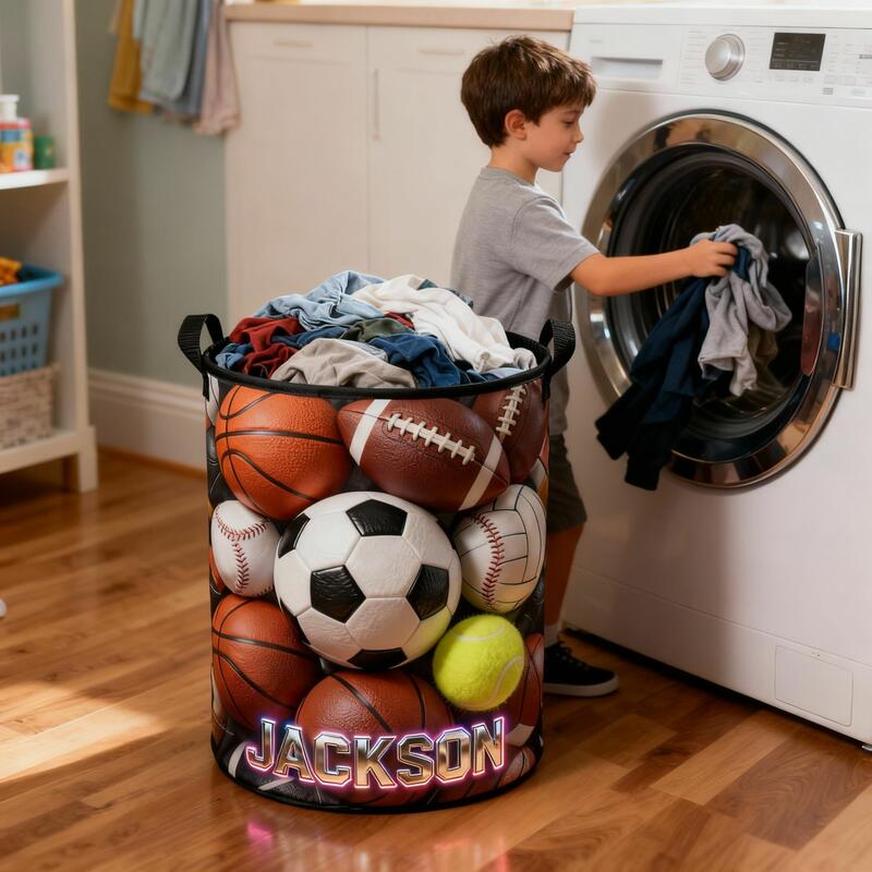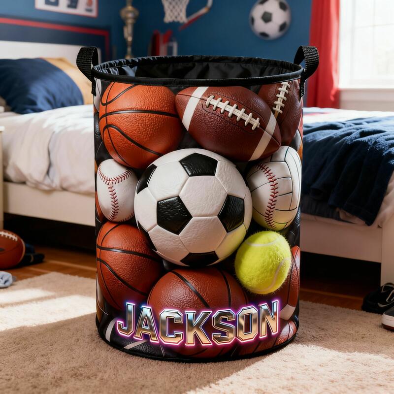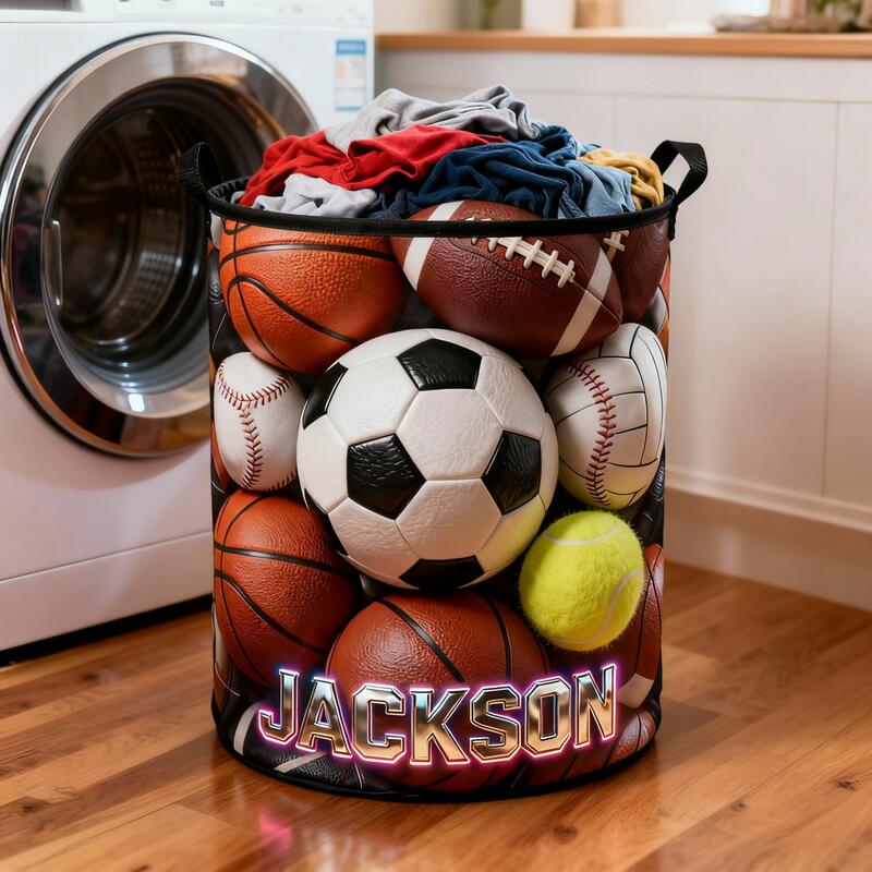 Personalized Laundry Baskets with Customizable Names Balls Patterns Perfect as a Home Gift