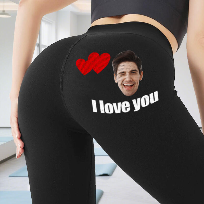 Personalized Leggings I Love You Custom Photo Heart Design Perfect Couple Gift for Her