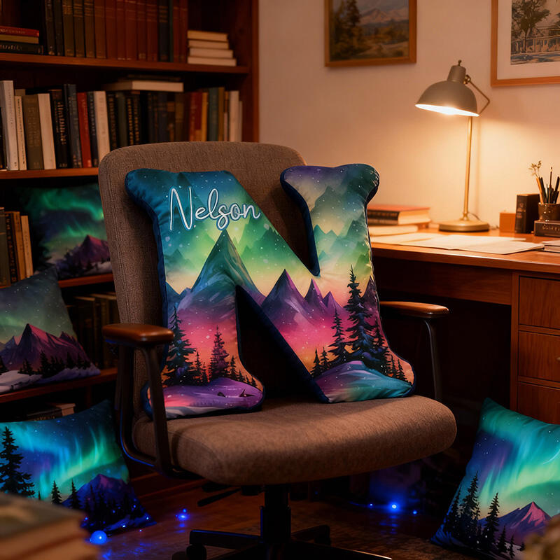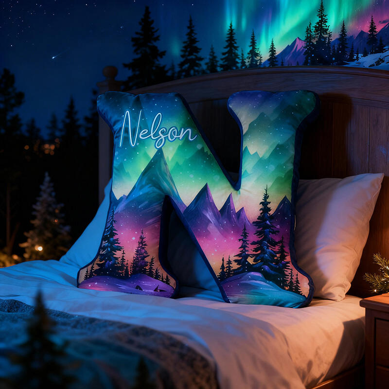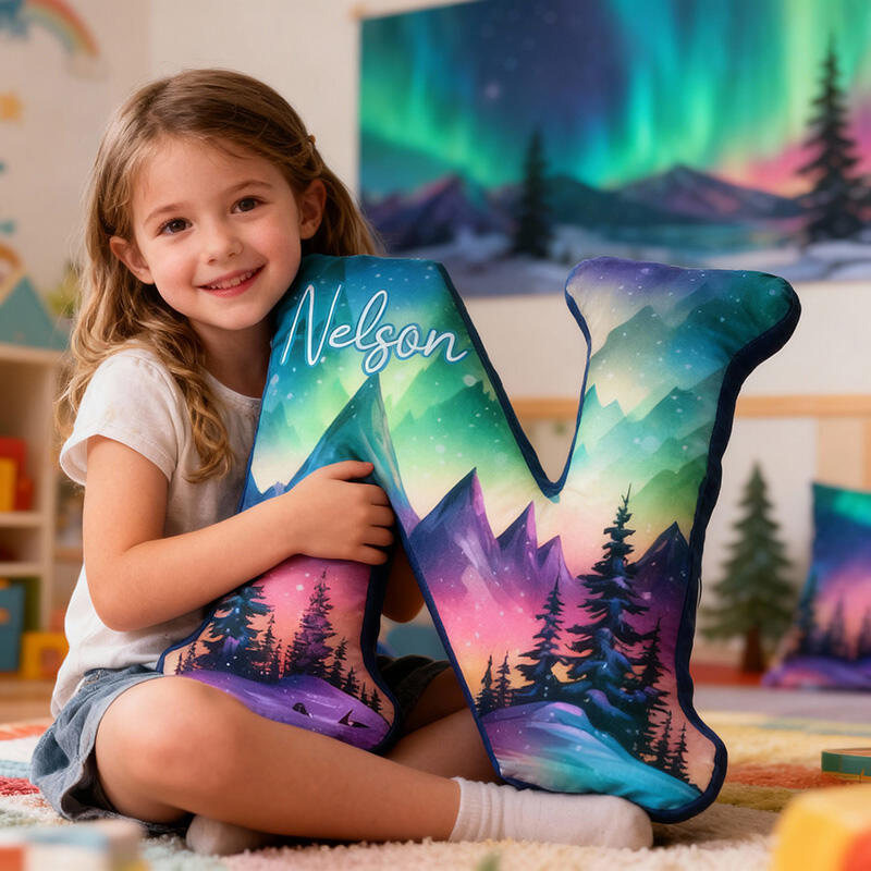 Personalized Letter Pillow with Aurora Pattern Precious Gift for Kid