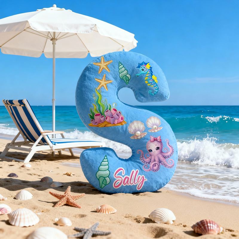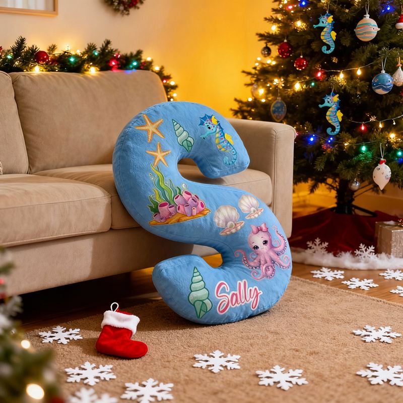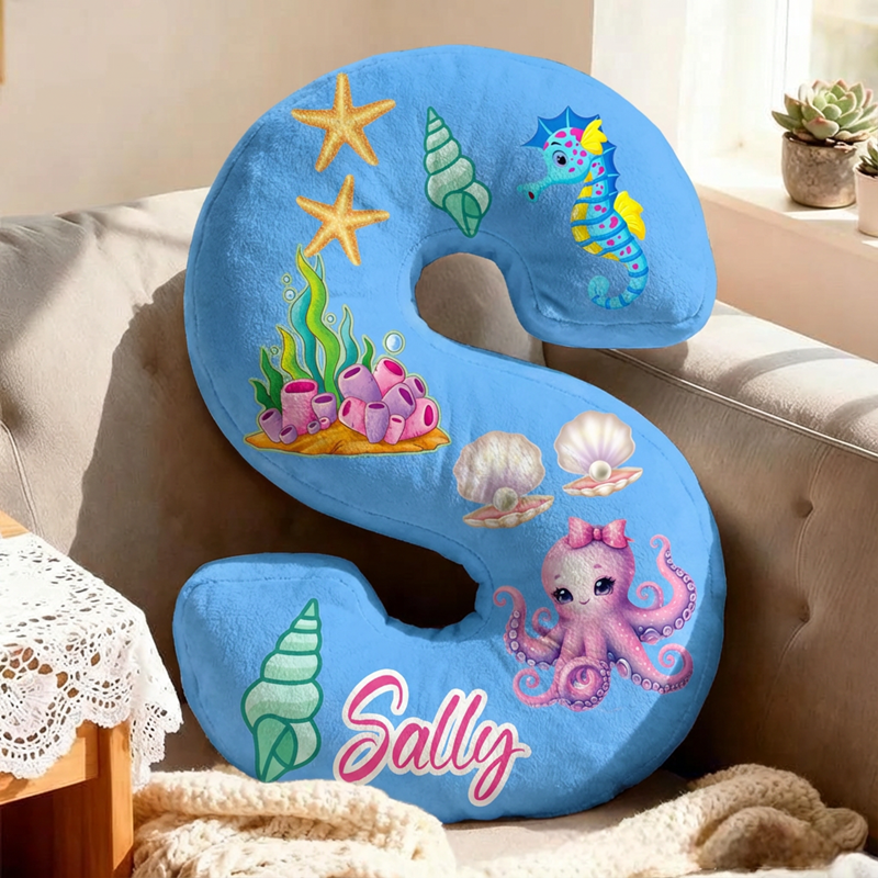 Personalized Letter-Shaped Pillow Octopus Seahorse Seashell Design Perfect Gift for Kids