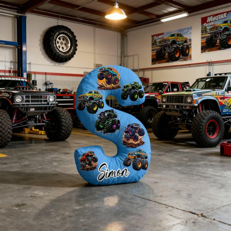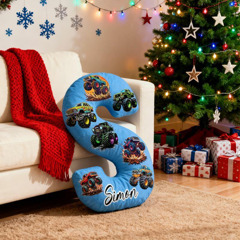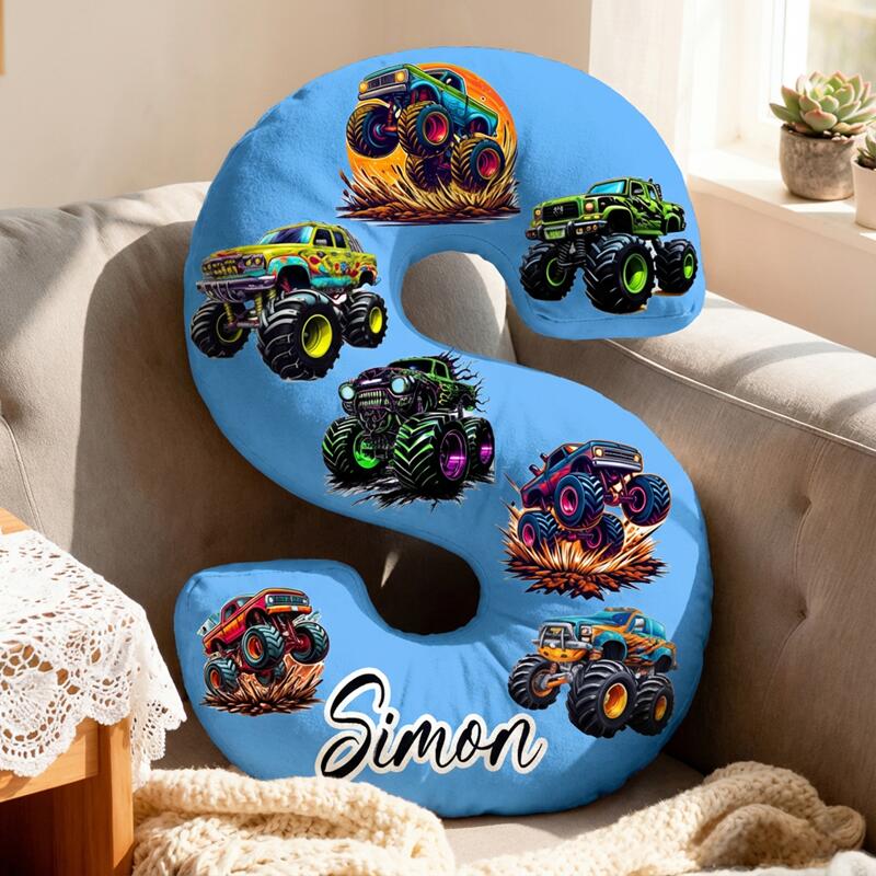 Personalized Letter-Shaped Pillow Off-Road Racing Car Graphic Design Cool Gift for Kids