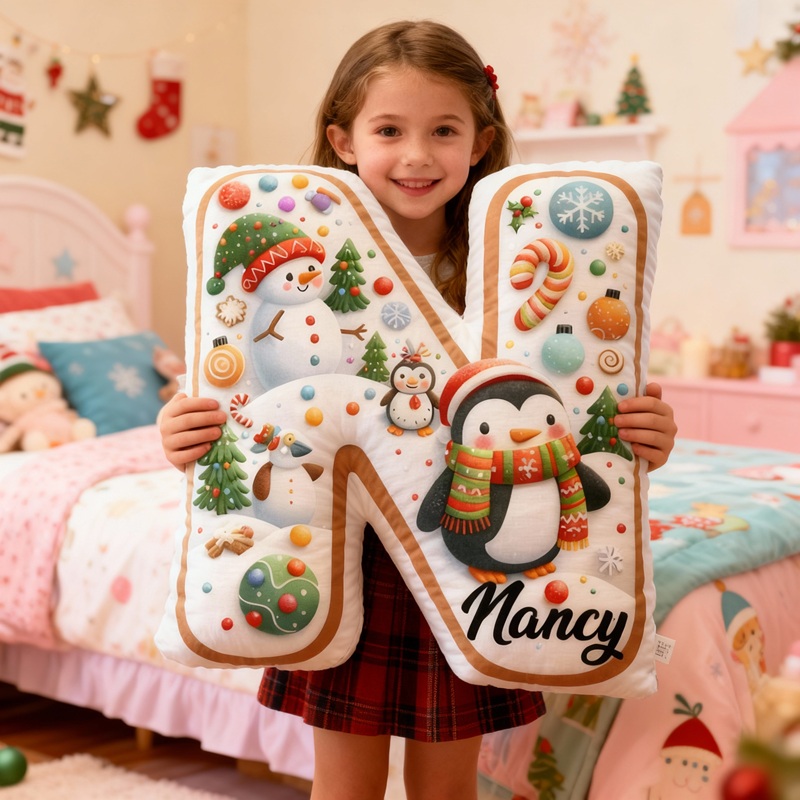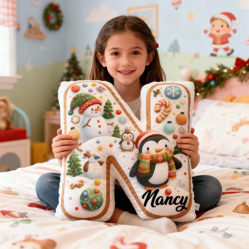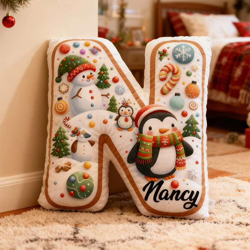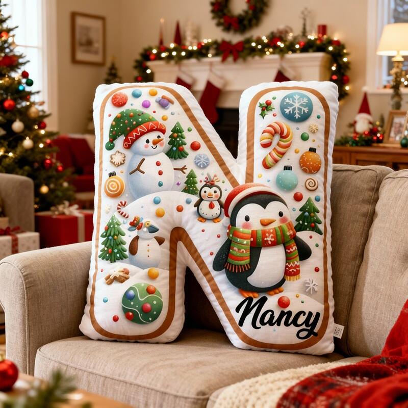 Personalized Letter-Shaped Pillow Snowman and Penguin Cute Design Christmas Gift for Children