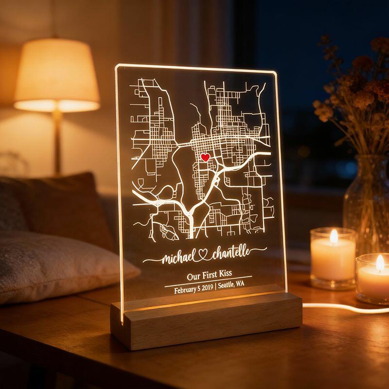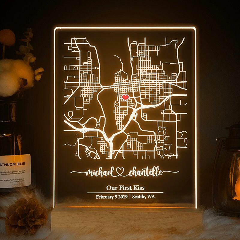 Personalized Map Night Light Minimalist Gift for Valentine's Day