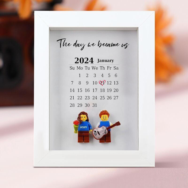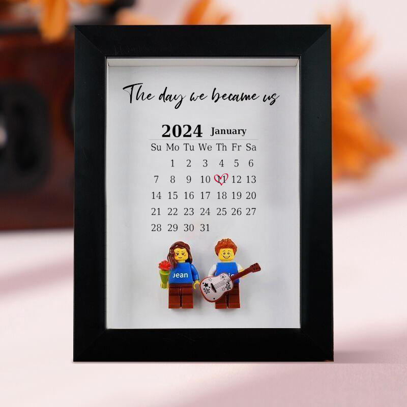 Personalized Minifigure Photo Frame With Calendar Valentine's Day Gift For Couples