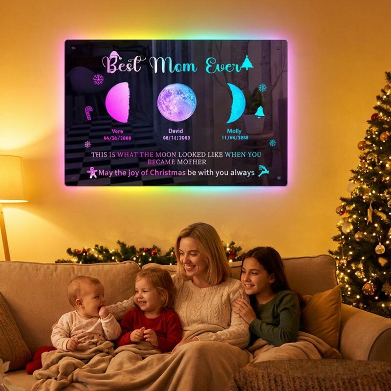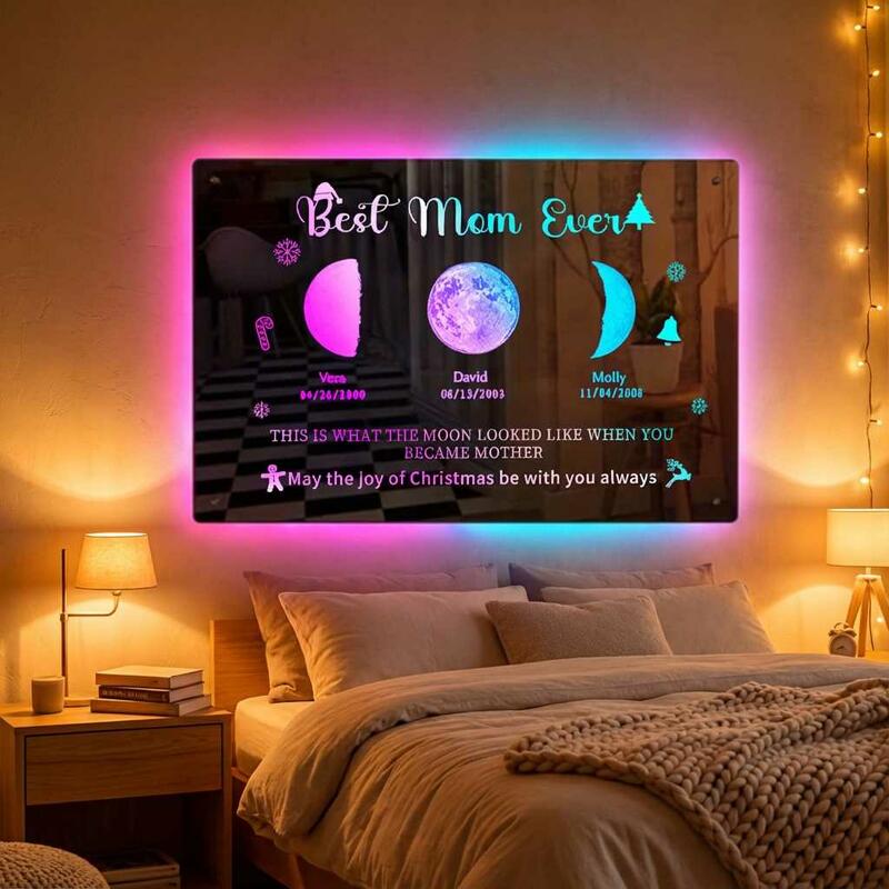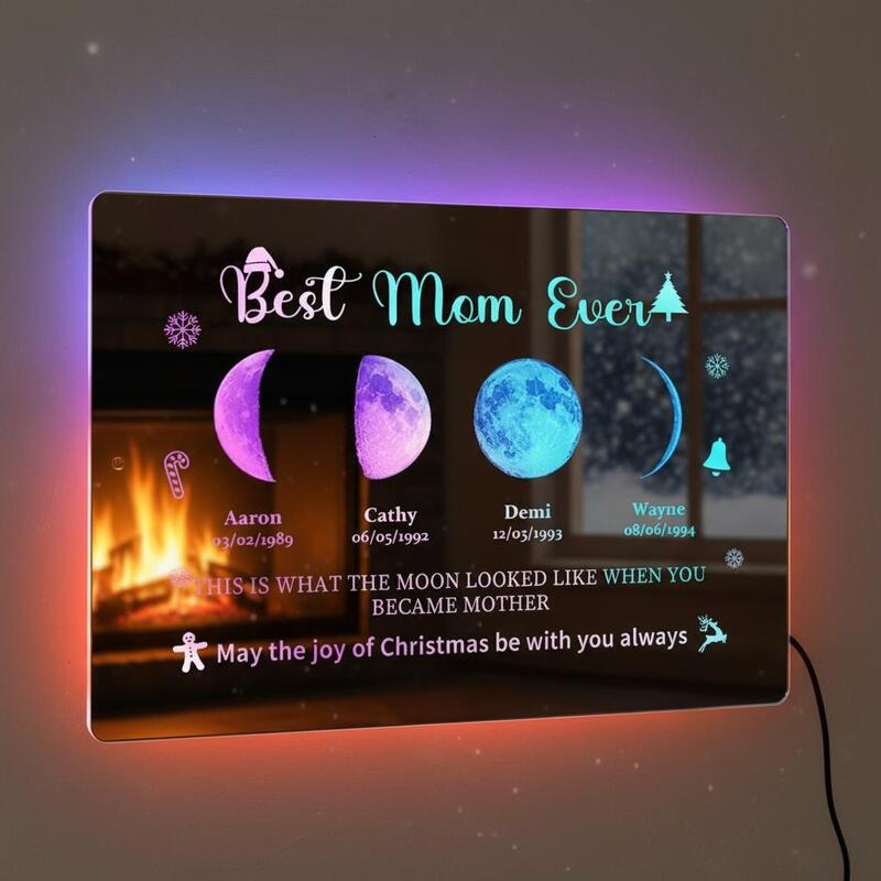 Personalized Mirror Lamp with Customizable Moon Phase and Name Warm Christmas Gift for Mom