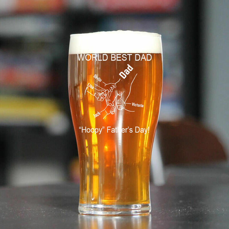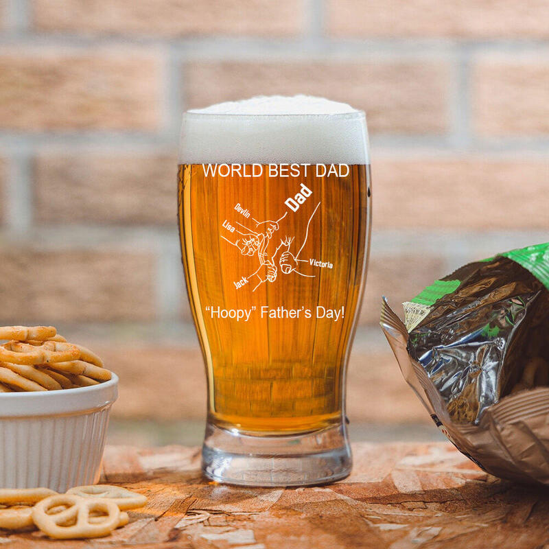 Personalized Name Beer Glass with Hands Pattern Precious Father's Day Gift