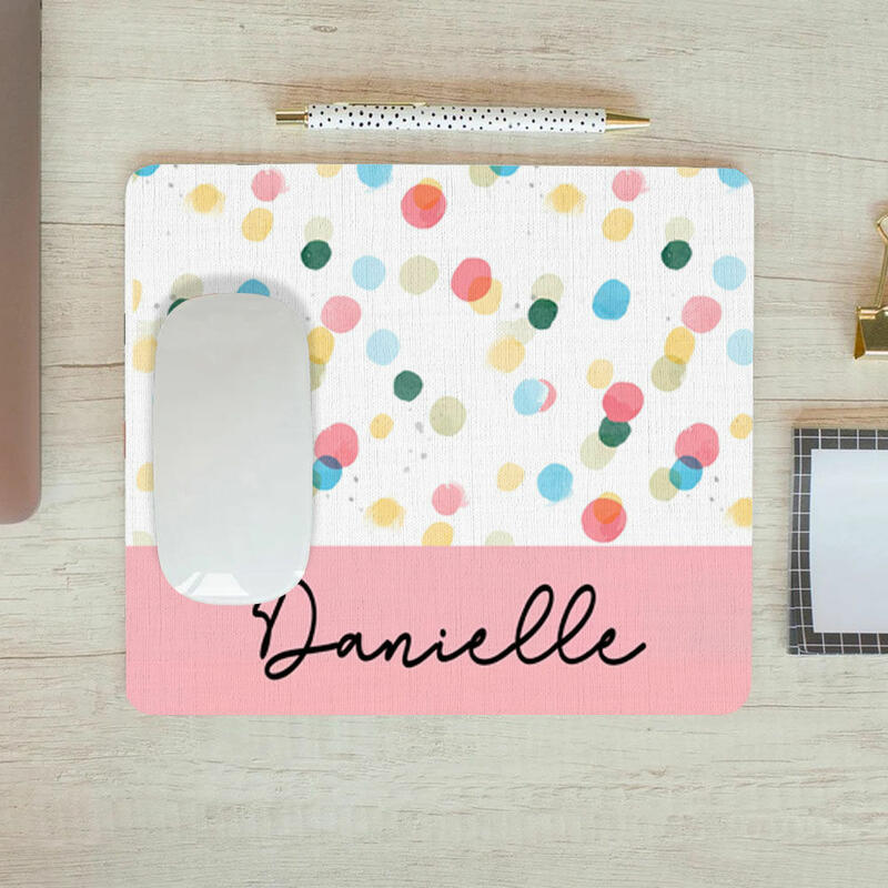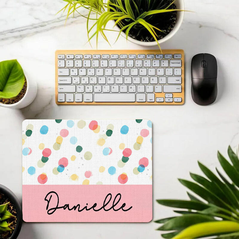 Personalized Name Mouse Pad with Colorful Dots Pattern Beautiful Gift for Friends