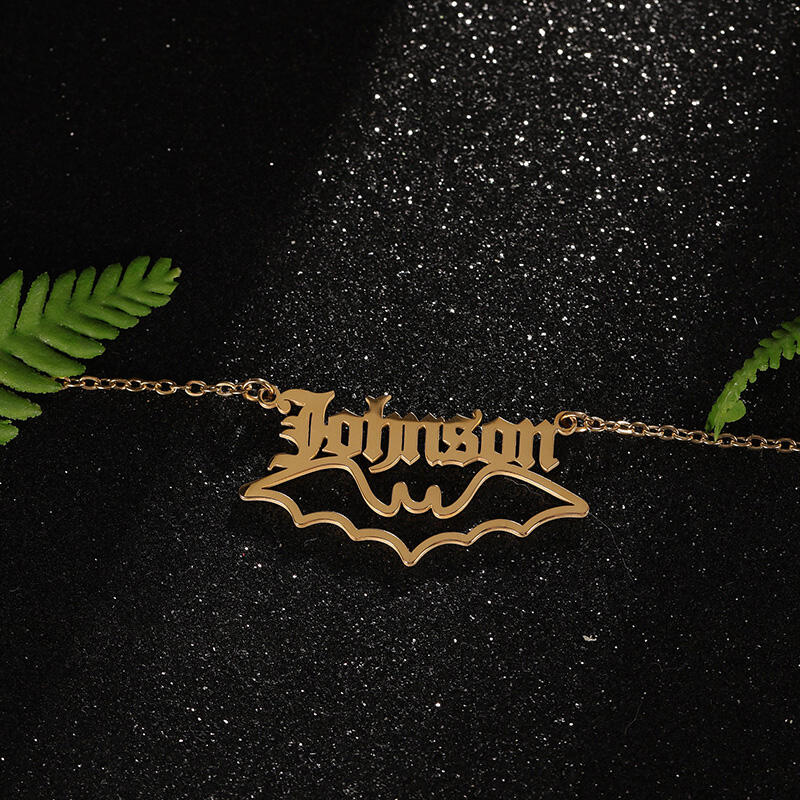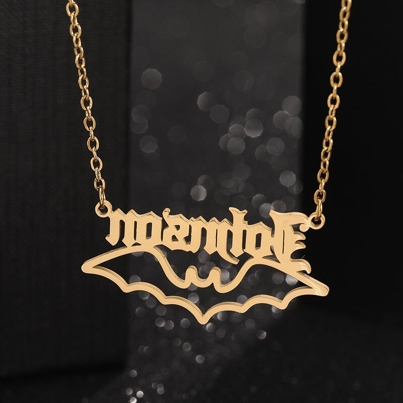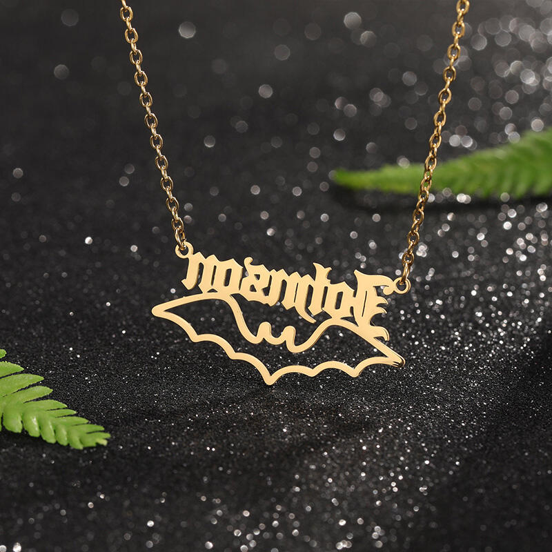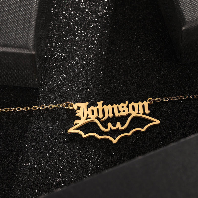 Personalized Name Necklace with Bat Wings Fun Gift for Her