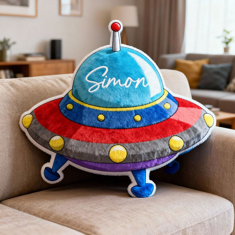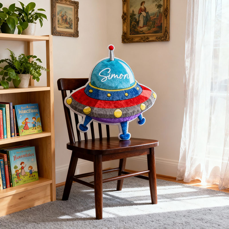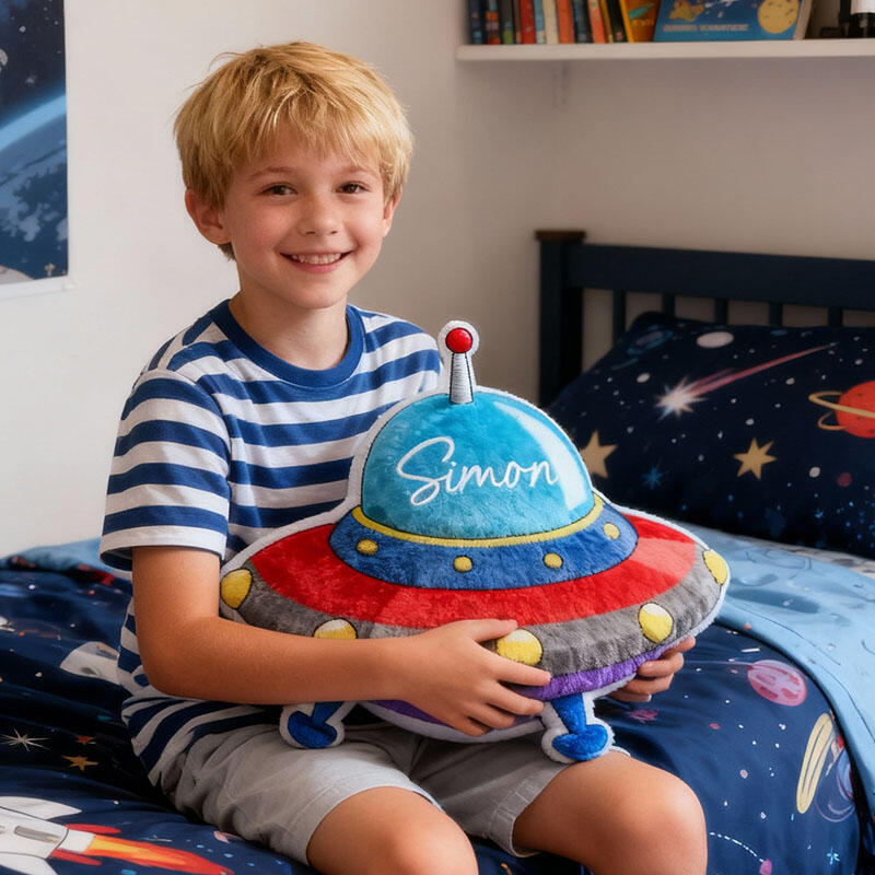 Personalized Name Pillow with Spaceship Design Great Gift for Kids