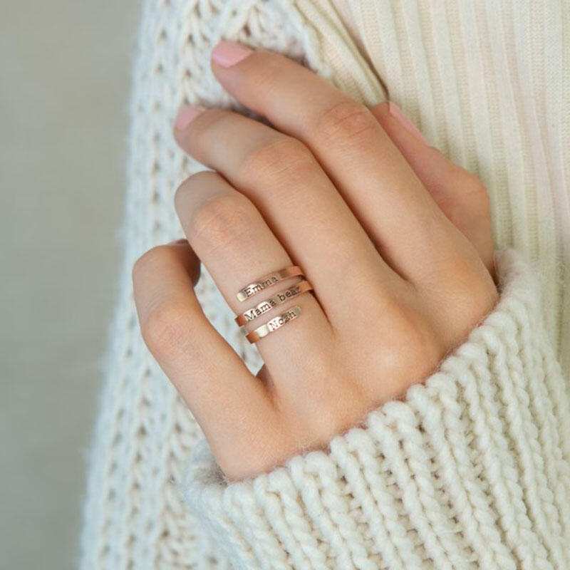 Personalized ring is a perfect piece of jewelry that makes you special and shows your personality. It's also a meaningful and thoughtful gift for your loved ones on Anniversaries, Birthday, Christmas, Mother's Day, Thanksgiving, Valentines Day, etc. Each of our custom jewelry pieces is designed specifically for you.