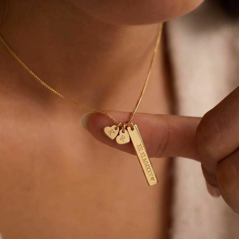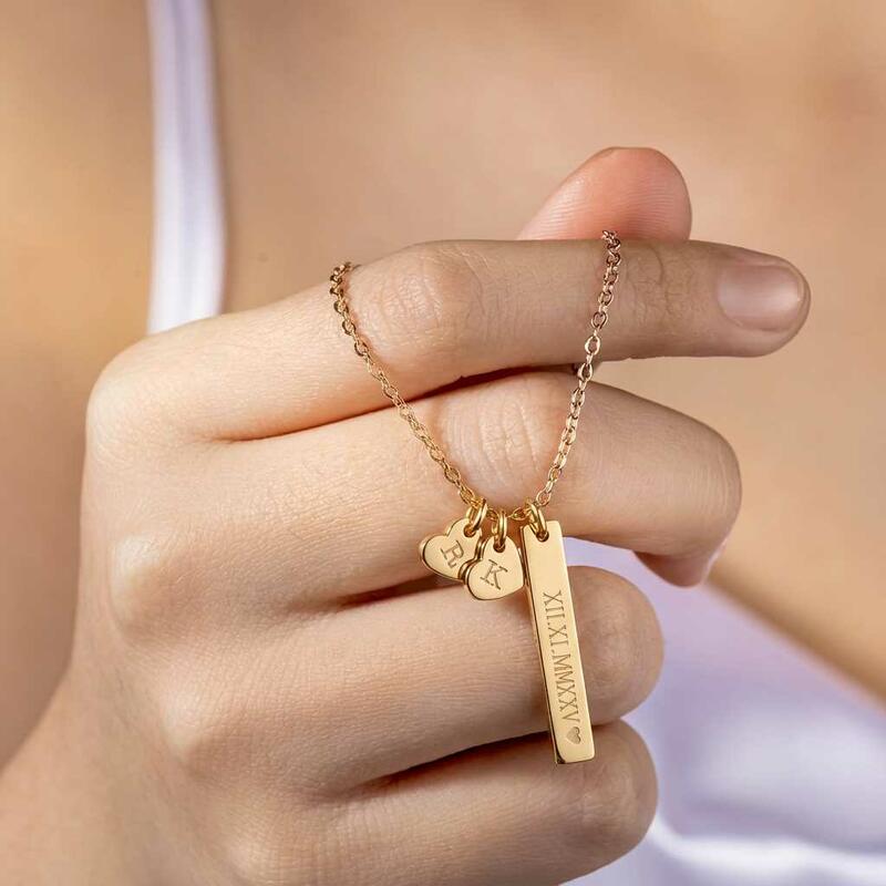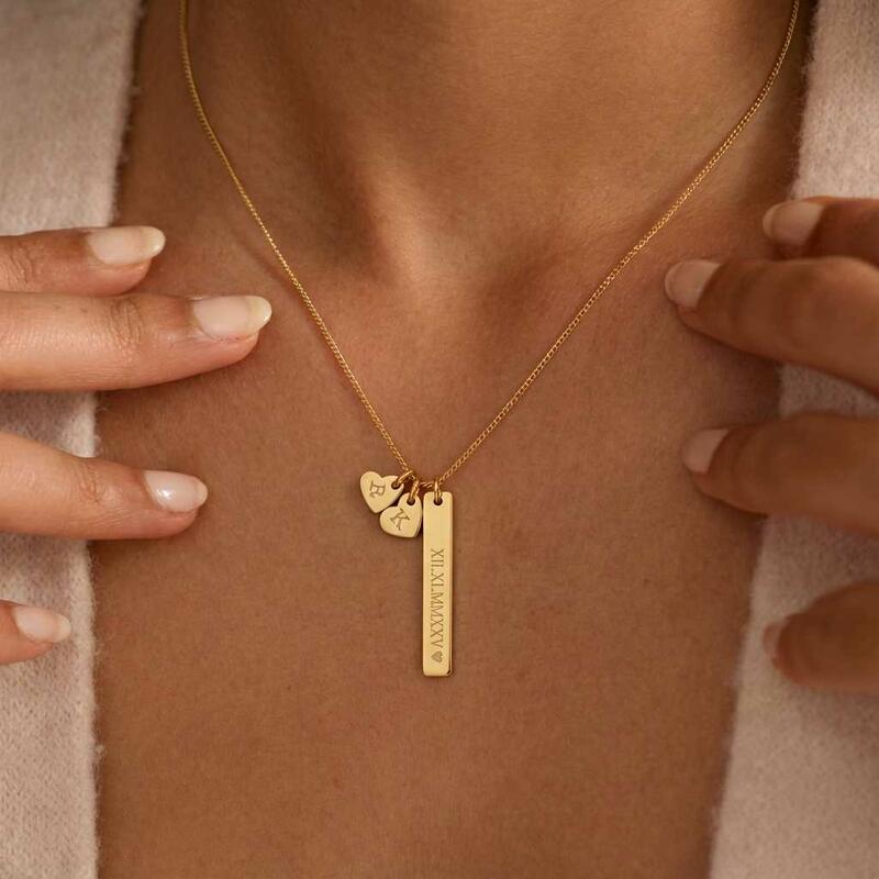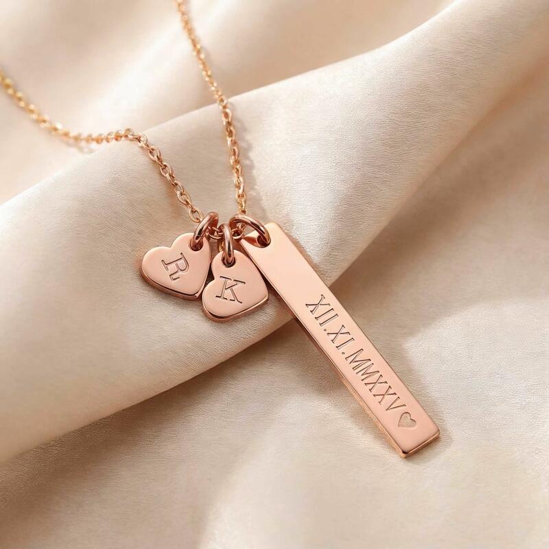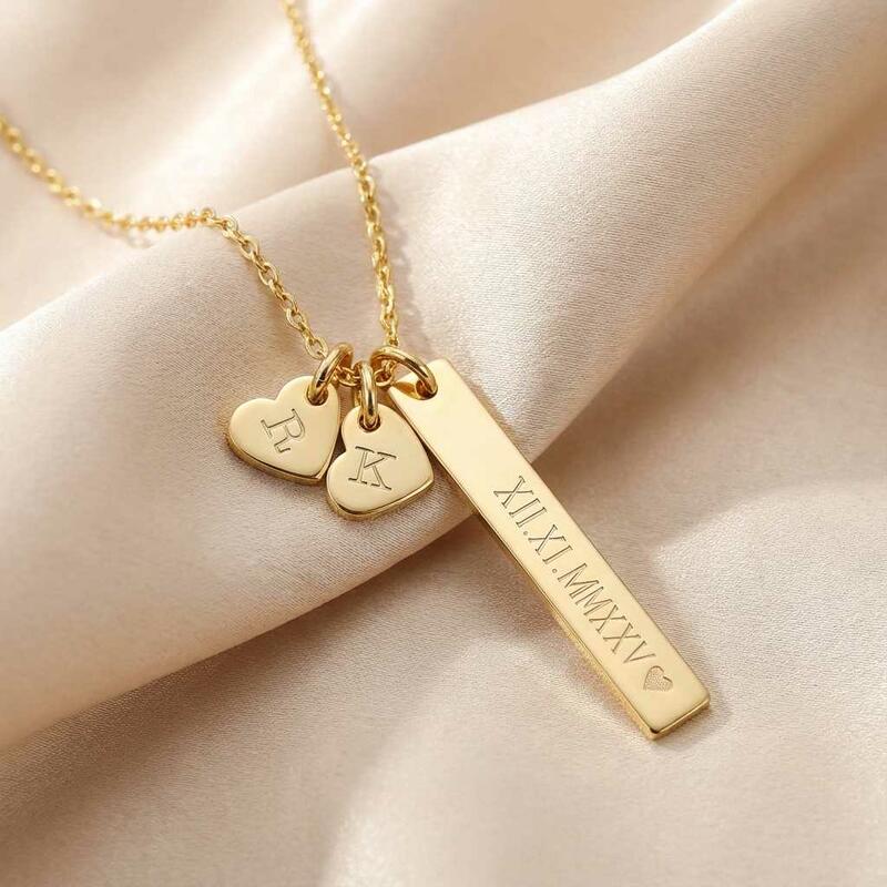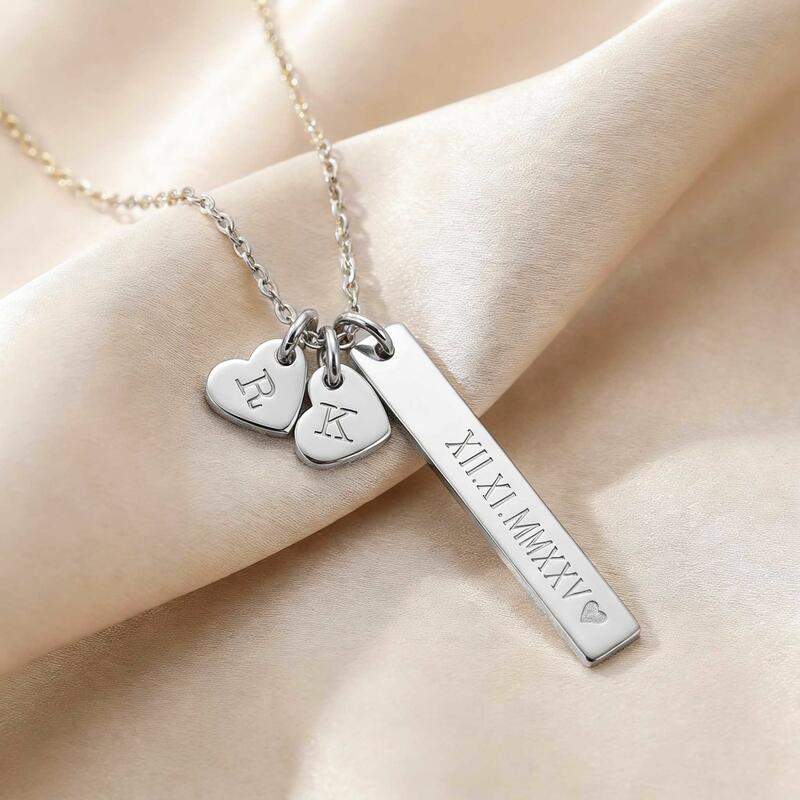 Personalized Necklace with Roman Numerals and Couple's Initials Romantic Gift for Valentine's Day