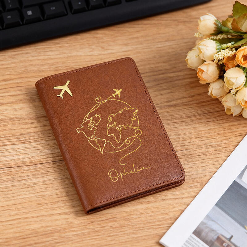Upgrade your travel essentials with this luxe personalized passport cover! Crafted from durable, water-resistant PU leather, this sleek holder keeps your passport safe while adding a special touch with custom gold foil engraving (names, initials, dates) or printed photos/sketches.