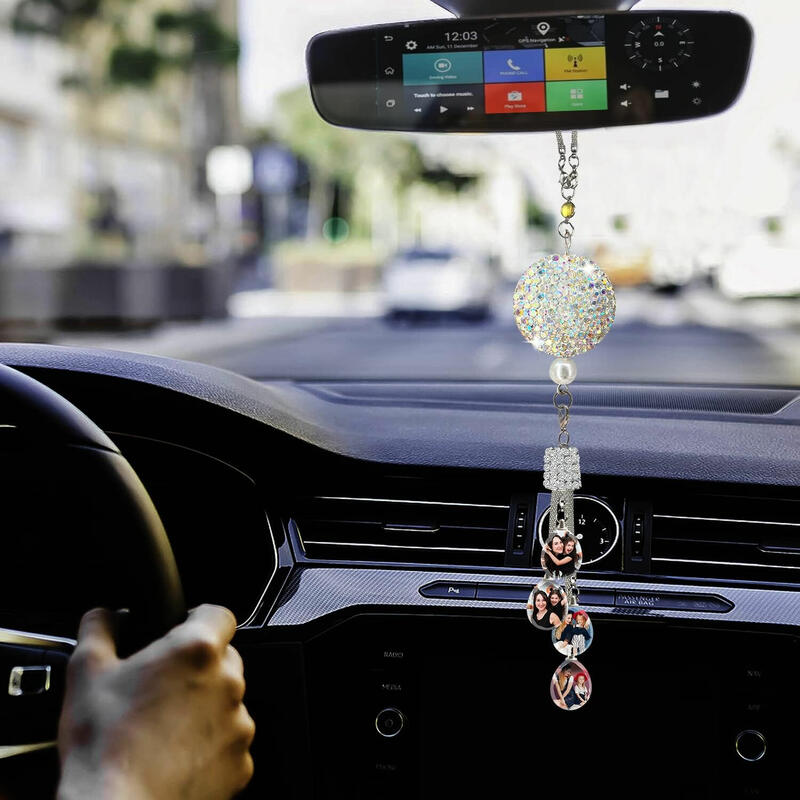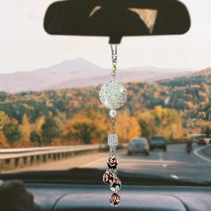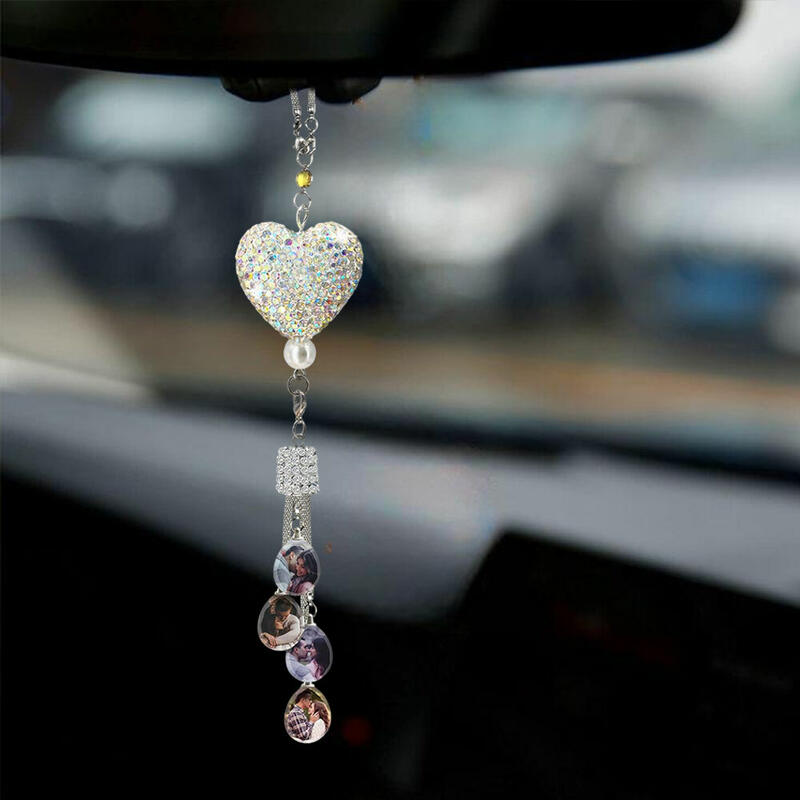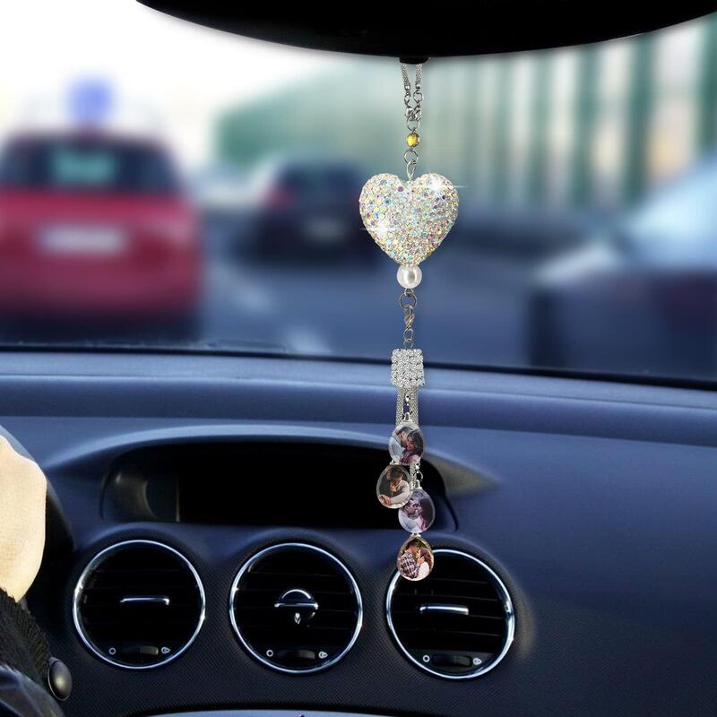 Personalized Photo Car Ornaments Shiny Heart/Ball Rhinestones Auto Accessories for Her