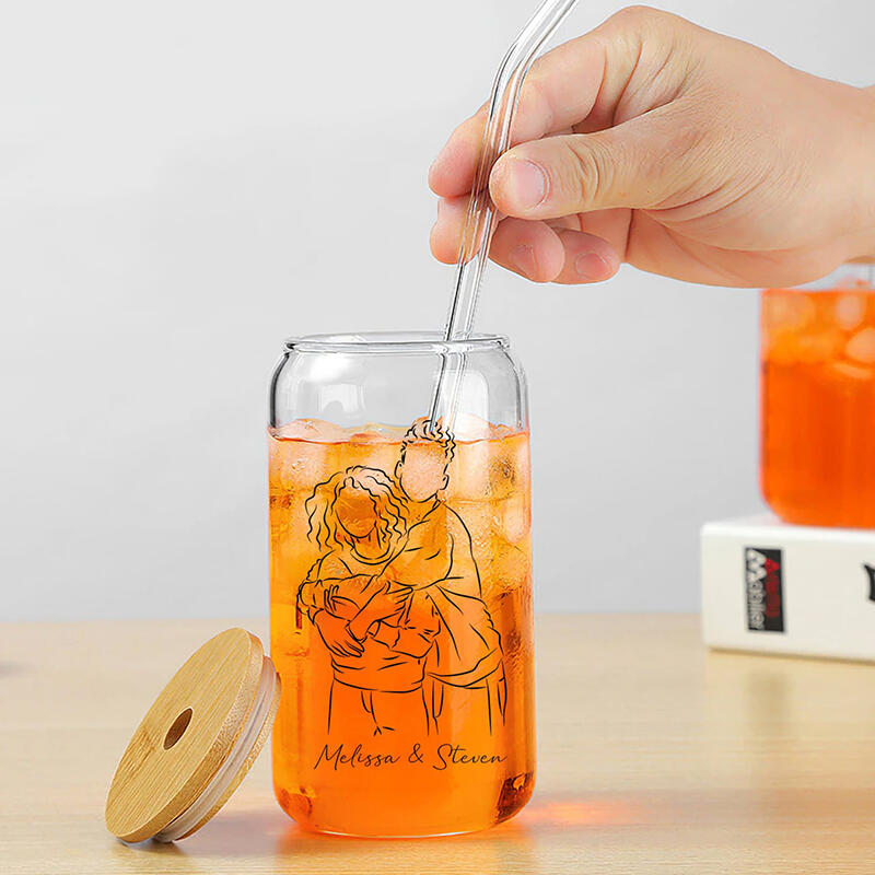 We bring you a personalized glass. This glass is made of high-quality glass, ensuring clear transparency and excellent quality. It comes with a lid and straw and has a 16-ounce capacity, which is big enough to hold your favorite beverage, whether it's coffee, tea, juice, or smoothies.
