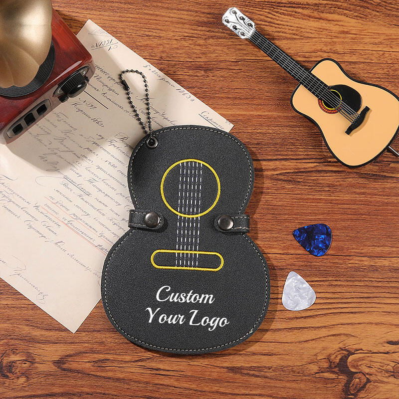 A customizable guitar pick holder lets every strum bear your mark.